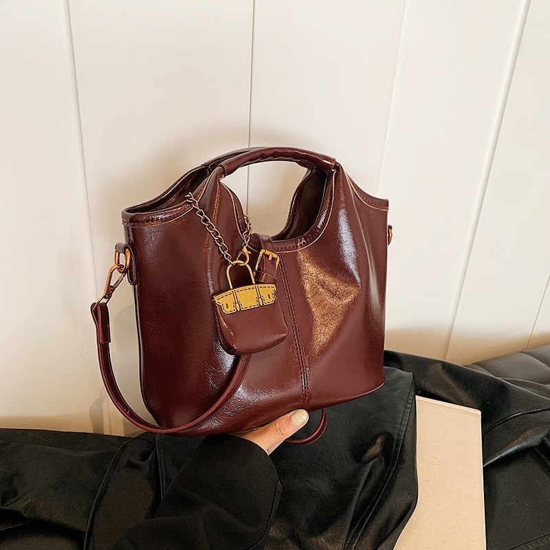 おしゃれなワックスの皮に新しい料理かごを包んで高級感のあるショルダーバッグを手に入れるナイトブラ トートバッグ