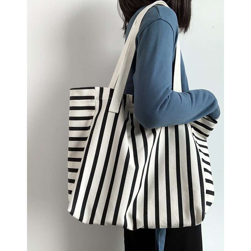 2025 ストライプ ズックバッグ レディース 肩掛けカバン 大容量トートバッグ 学生 ins 韓国 ショッピングバッグ トートバッグ