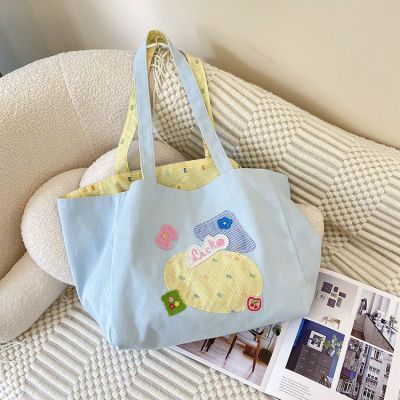 かわいい両面百合キャンバスバッグ新型シングル肩大容量学生トートバッグレジャー通勤韓国