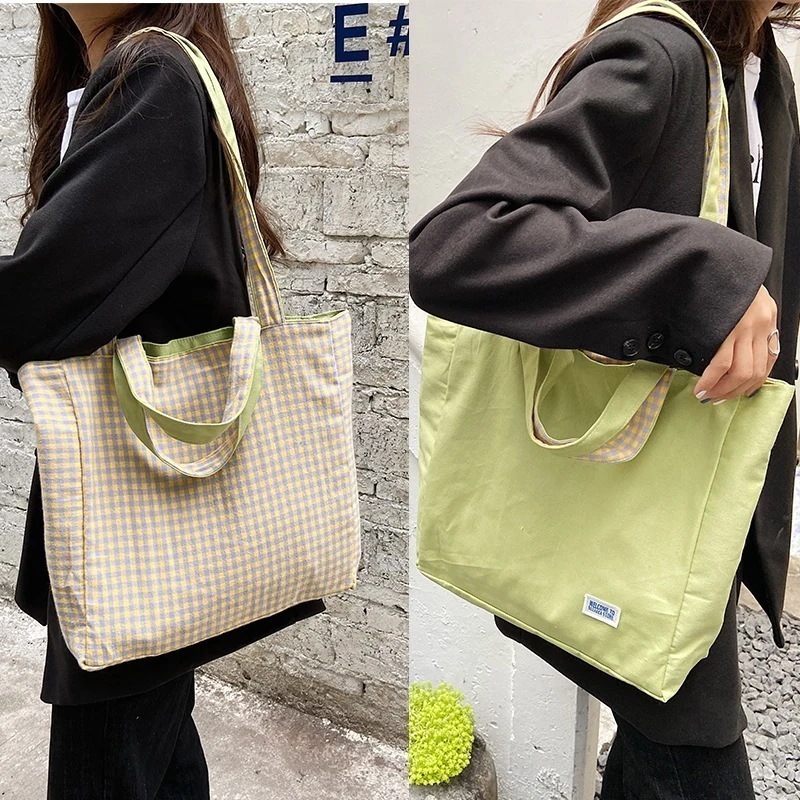 日韓系連結ダブルパンシンプルチェックショルダーバッグ学生女性カジュアル両用リュック