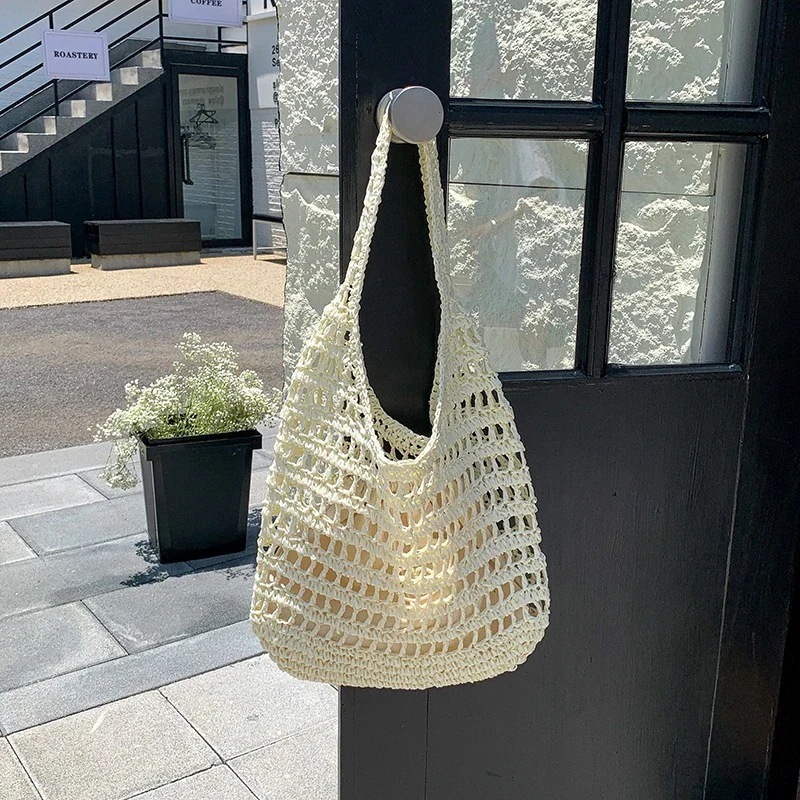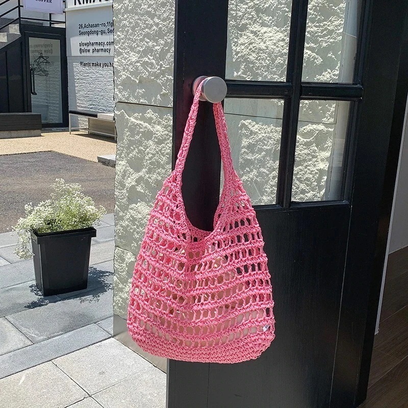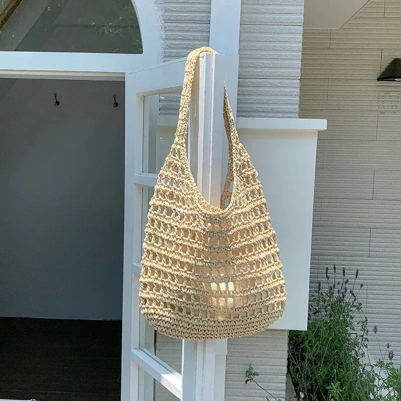 横長ボストンバッグ 夏 ニューデザイン ファッション 草編みバッグ トートバッグ バッグインバッグ ショルダーバッグ 大容量 透ける 編む