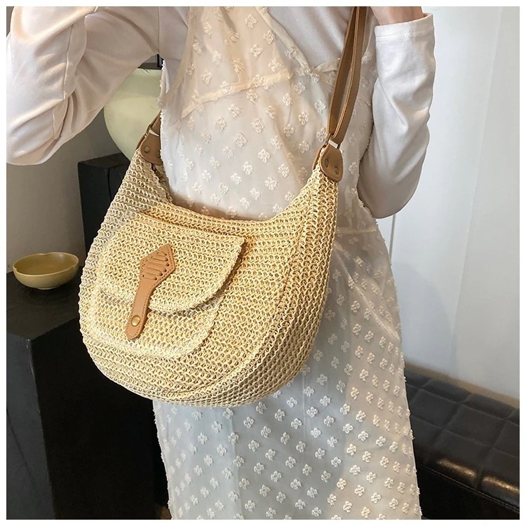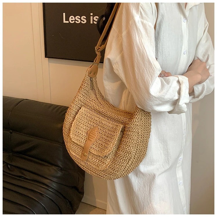 草編みバッグ レディース 斜め掛けカバン ショルダーバッグ 脇下バッグ ビーチバッグ トートバッグ 大容量トートバッグ
