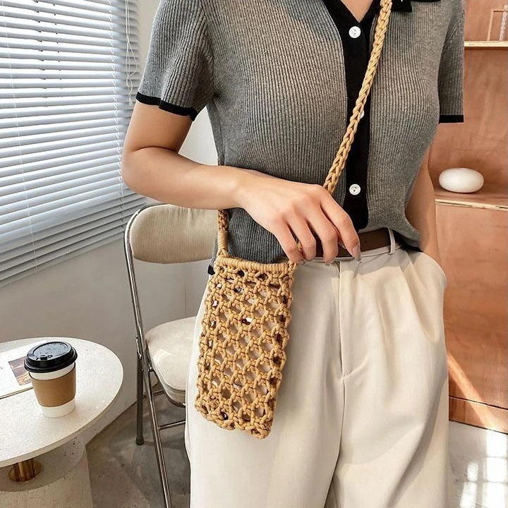 斜め掛けカバン バッグを編む ショルダーバッグ スマホポーチ 綿麻 手提げバッグ