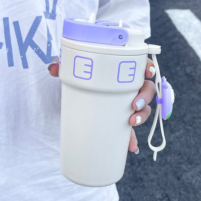 【2026年新作】シンプル コーヒーカップ 二役飲み口 可愛いフィギュア オフィス水筒 カップル高見え 316ステンレスボトル
