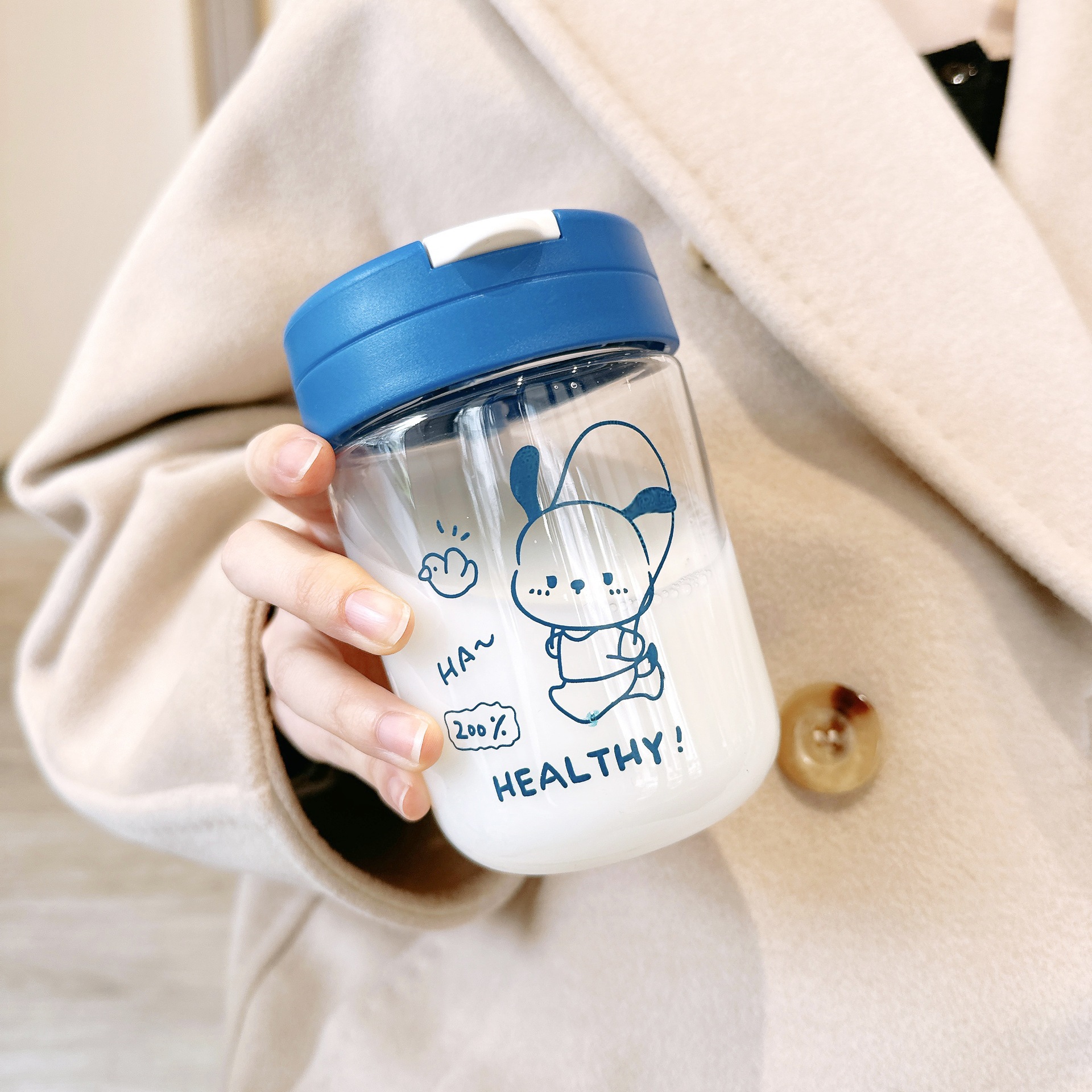 【2026年新作】カートゥーン プラボトル 子犬 学生高見え ミニマルドリンクボトル 携帯便利 カップルコーヒーストローカップ