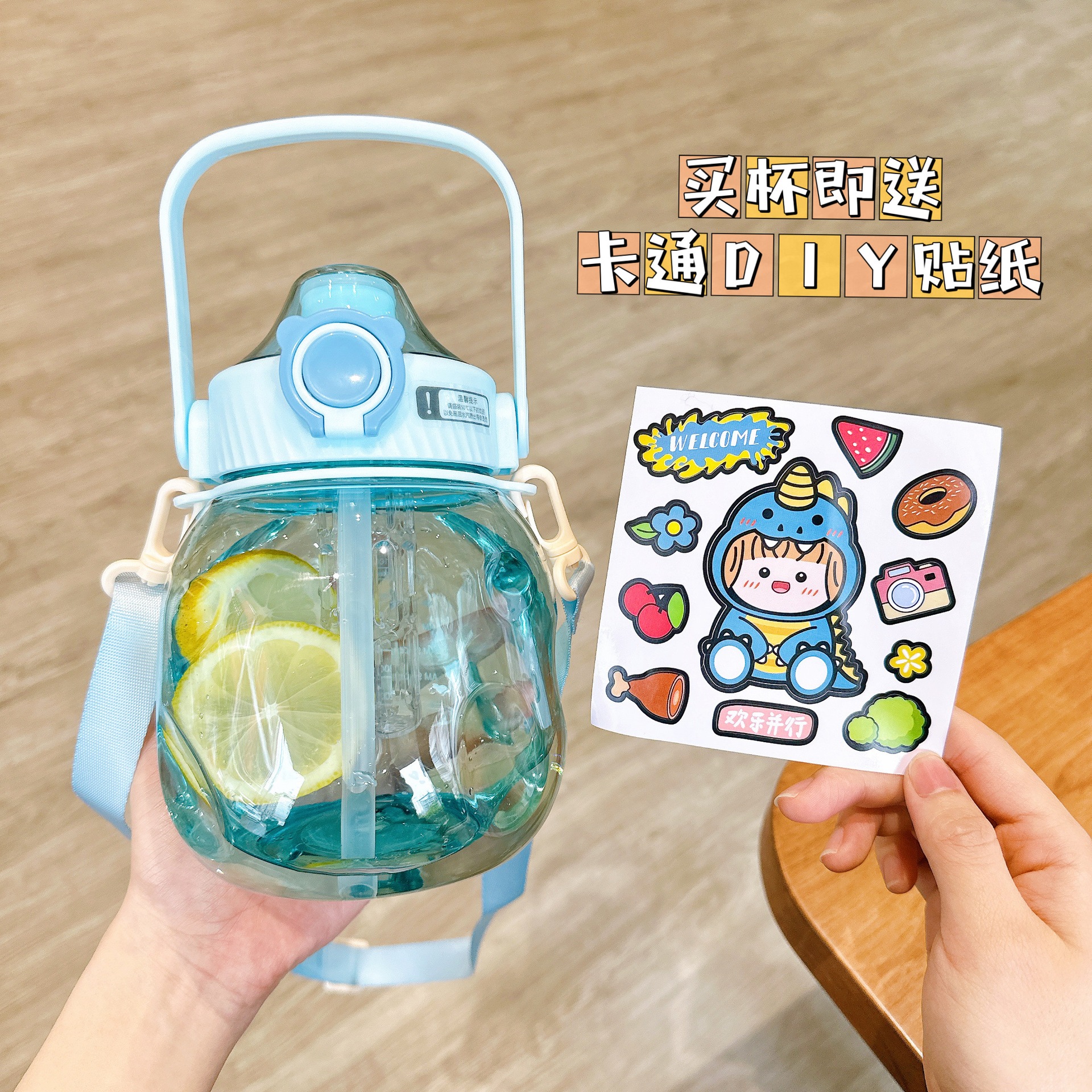 【2026年新作】大容量 水筒 高見え学生子供耐衝撃 携帯便利茶葉ケース付き プラぽっちゃりボトル カップル