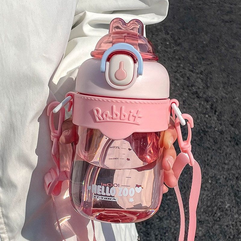 【2026年新作】うさぎ プラカップ 可愛い学生カートゥーン アウトドア大容量 通学専用 萌え系携帯便利 ストロー付き水筒