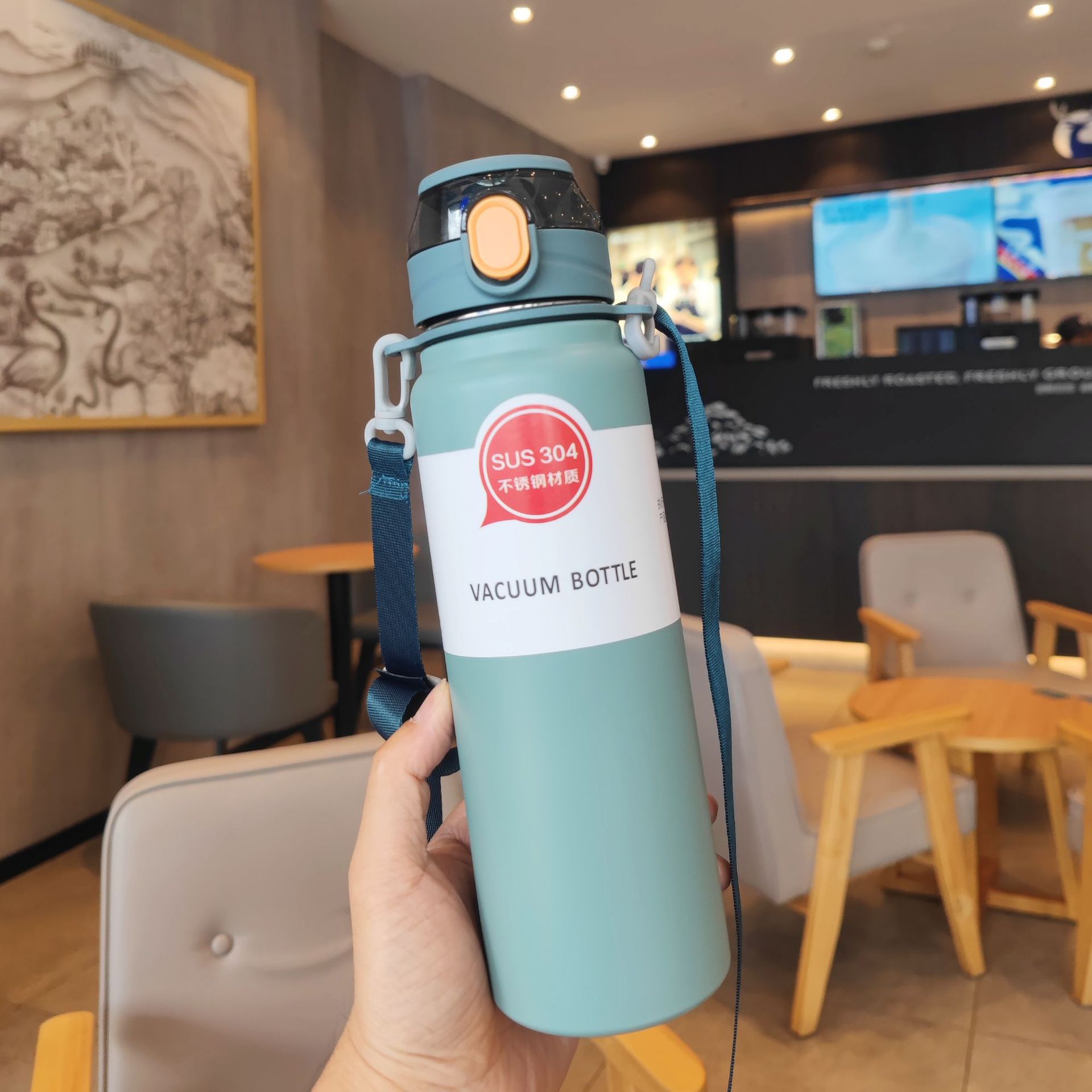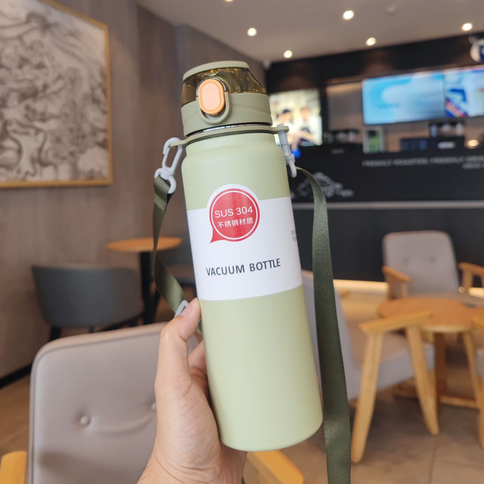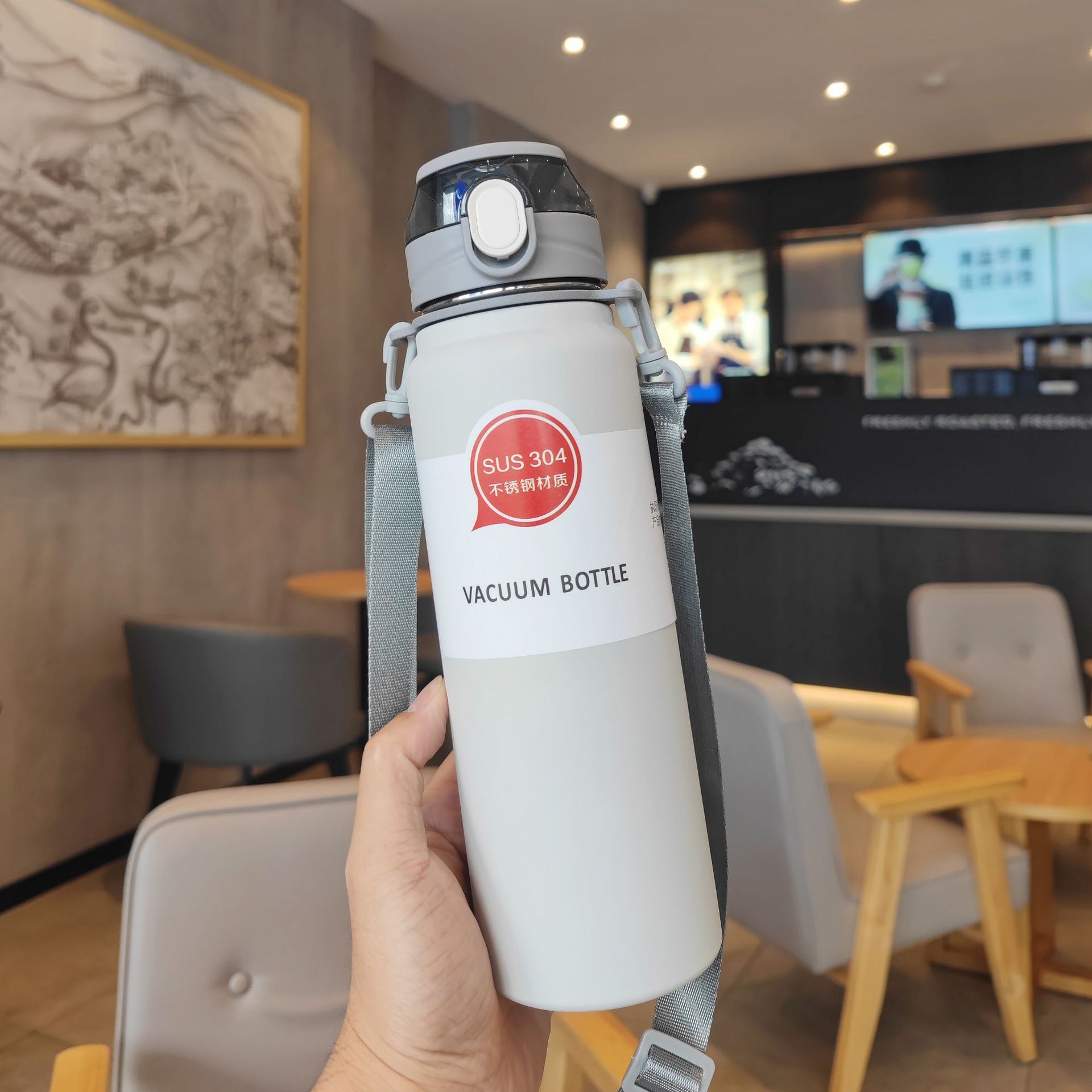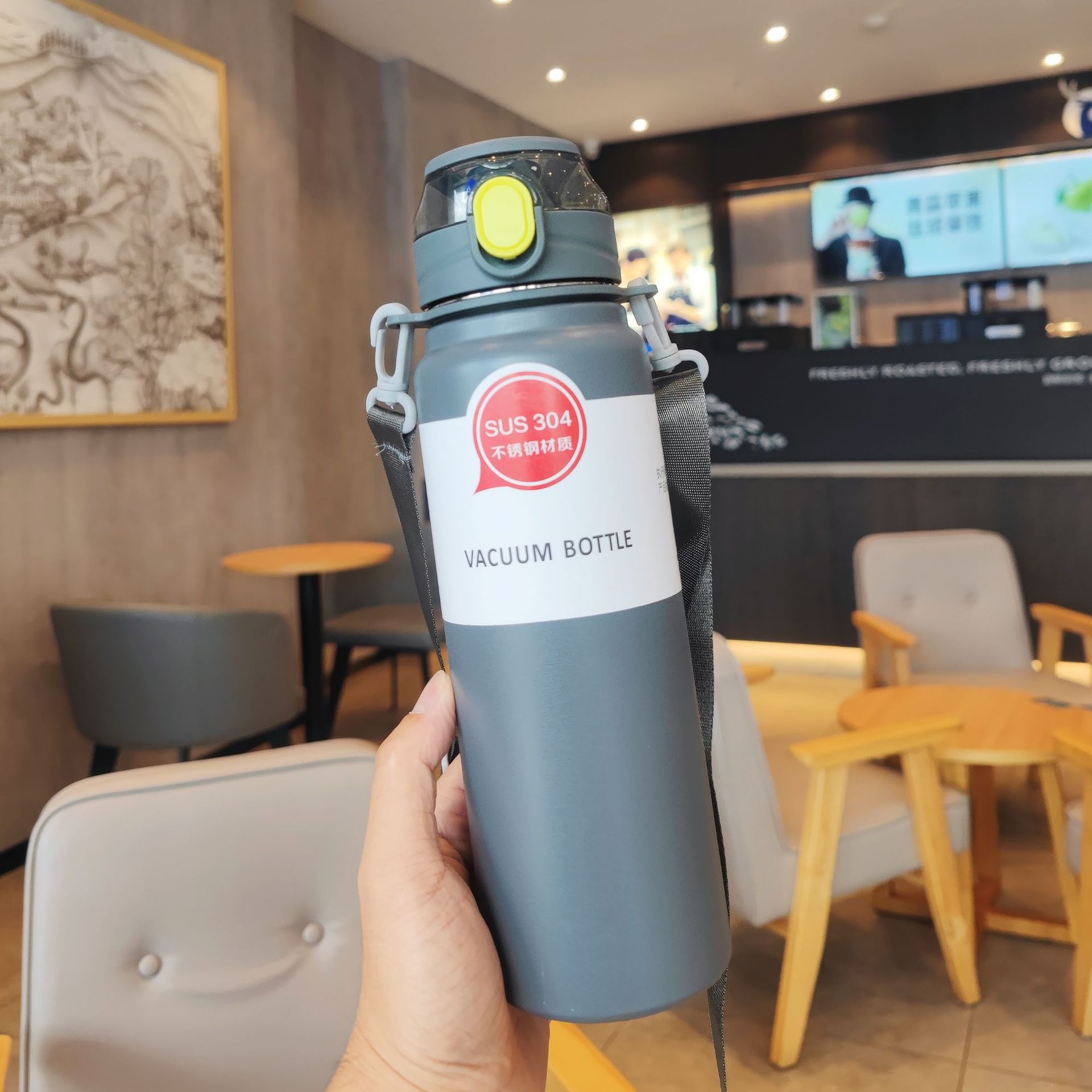 【2026年新作】シンプル 無地 保温ボトル 大容量 大人フィットネス携帯便利 背負える 男女ステンレスポップ蓋ストローカップ
