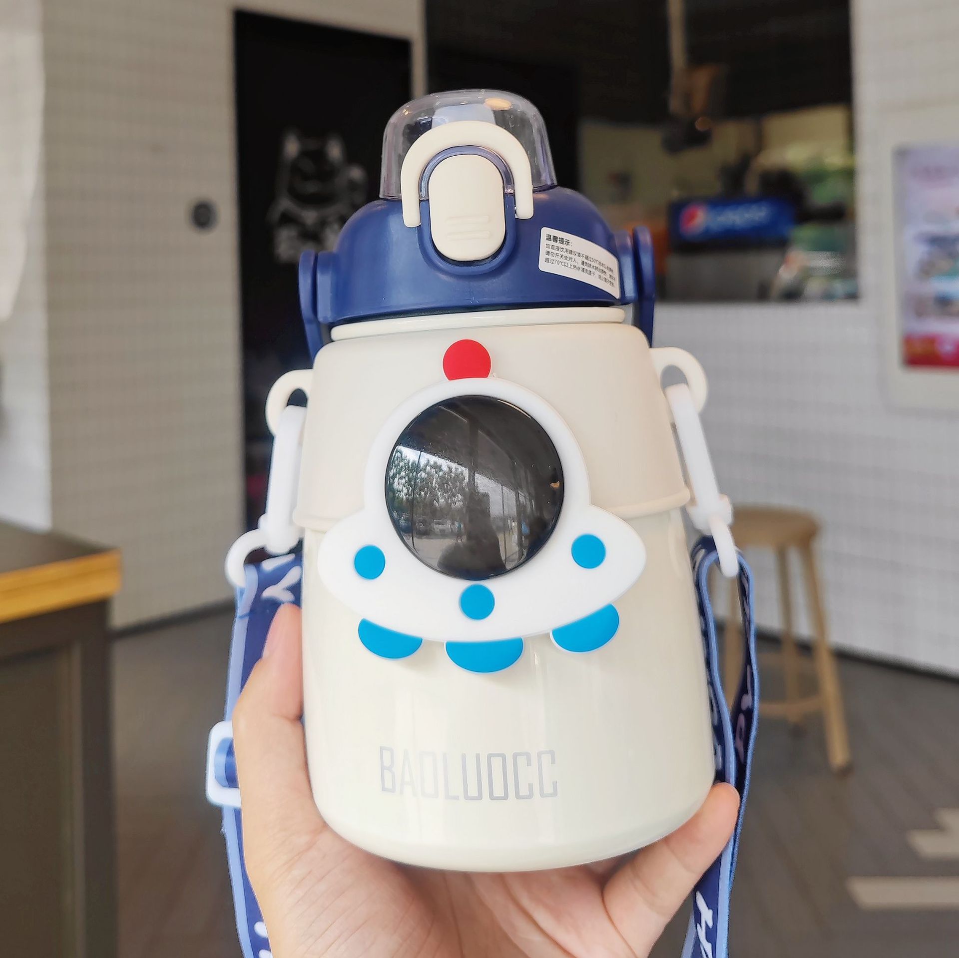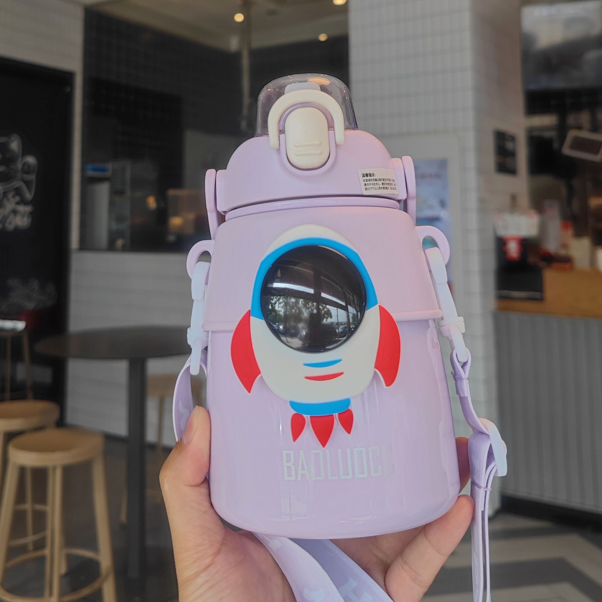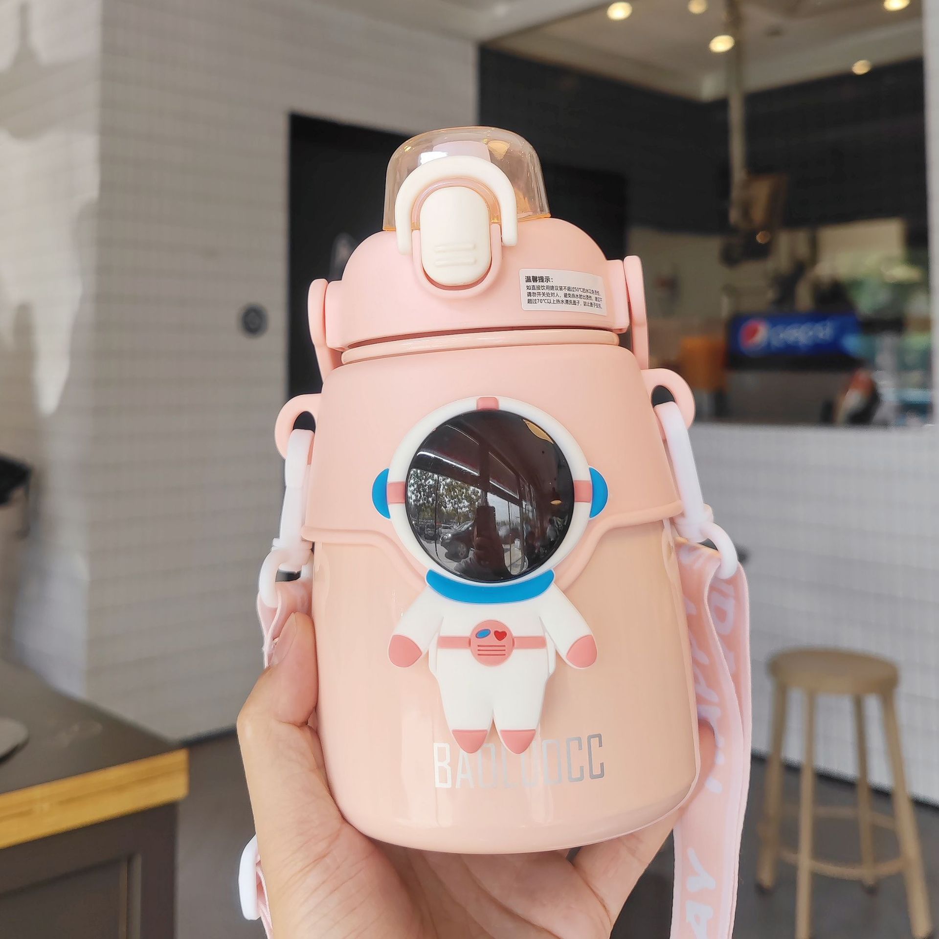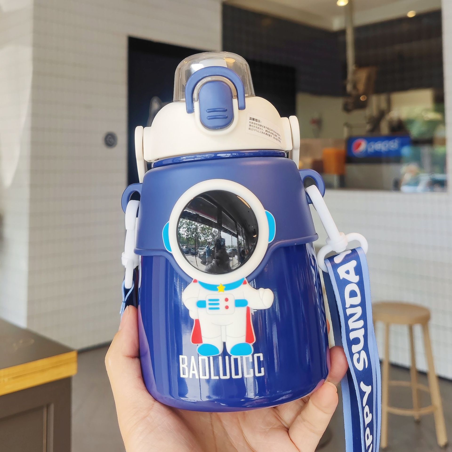 【2026年新作】子供保温ボトル 宇宙飛行士 携帯便利アウトドア 学生宇宙飛行士デザイン 背負えるポップ蓋 ステンレスストローカップ