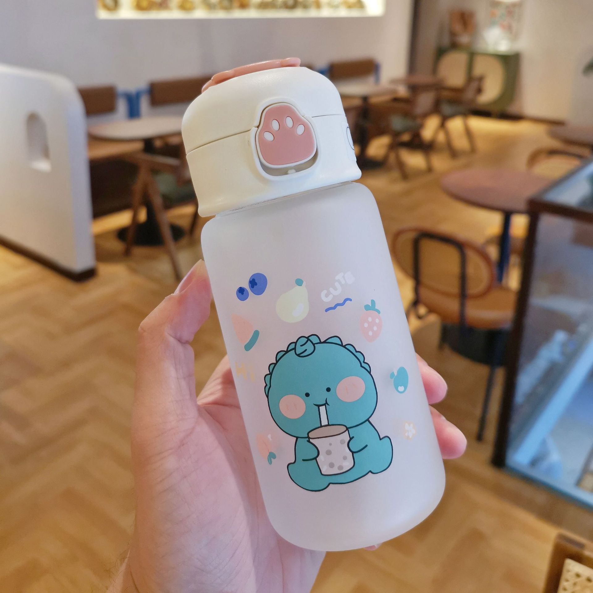 【2026年新作】マット加工 ガラスボトル ストロー付き 可愛い学生高見え水筒 女性携帯便利耐熱 ポップ蓋学生携帯タンブラー