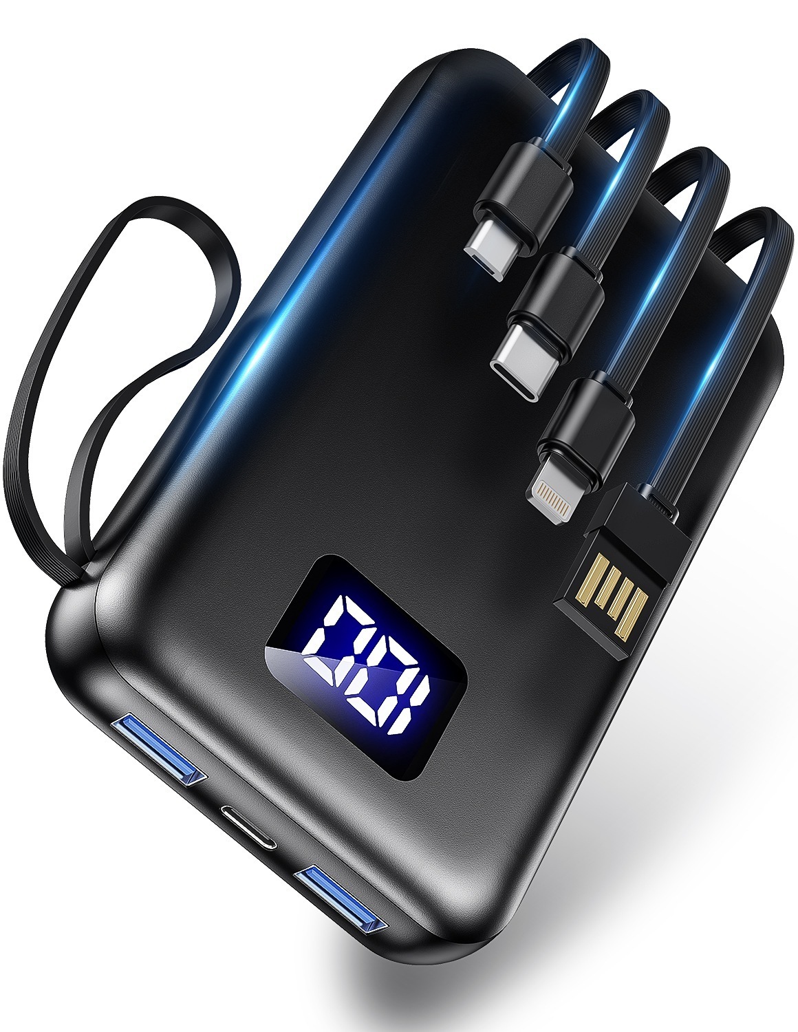 モバイルバッテリー 小型 薄型 スマホ充電器 大容量 45800mAh 急速充電 軽量6台同時充電 充電器 Type-C Lightning 4本ケーブル内蔵 防災備品 iPhone