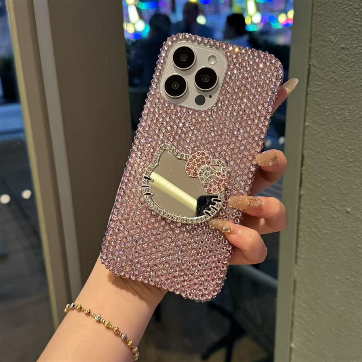 iPhone17 用 ケース 可愛いキティちゃん韓国 かわいい人気スマホケース おしゃれ シンプル キラキラ ラインストーン付き 携帯カバー携帯ケース 軽量 耐衝撃