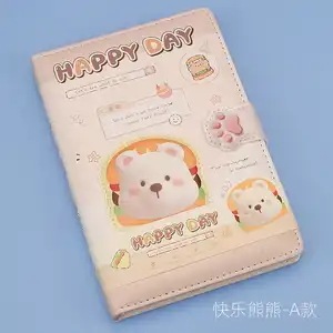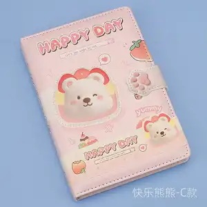 金谷かわいいクマのPU皮ノート磁気ボタンポケット帳手帳学生用厚手カラーノート
