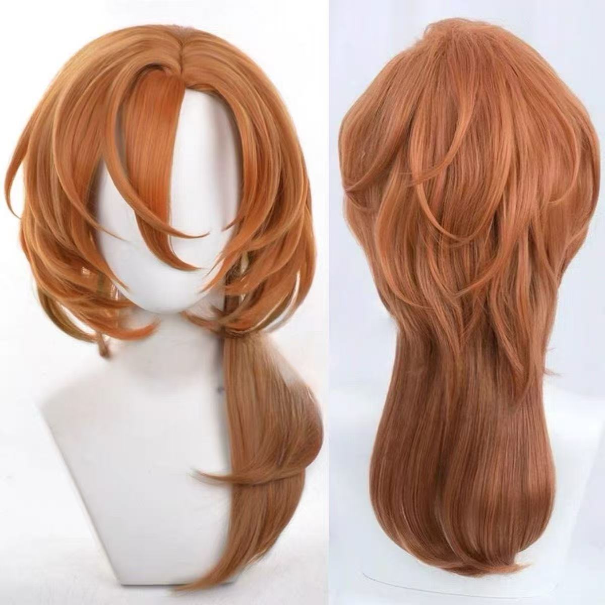 文豪ストレイドッグス中原中也アニメコスプレウィッグ斜め前髪中長髪亜麻黄