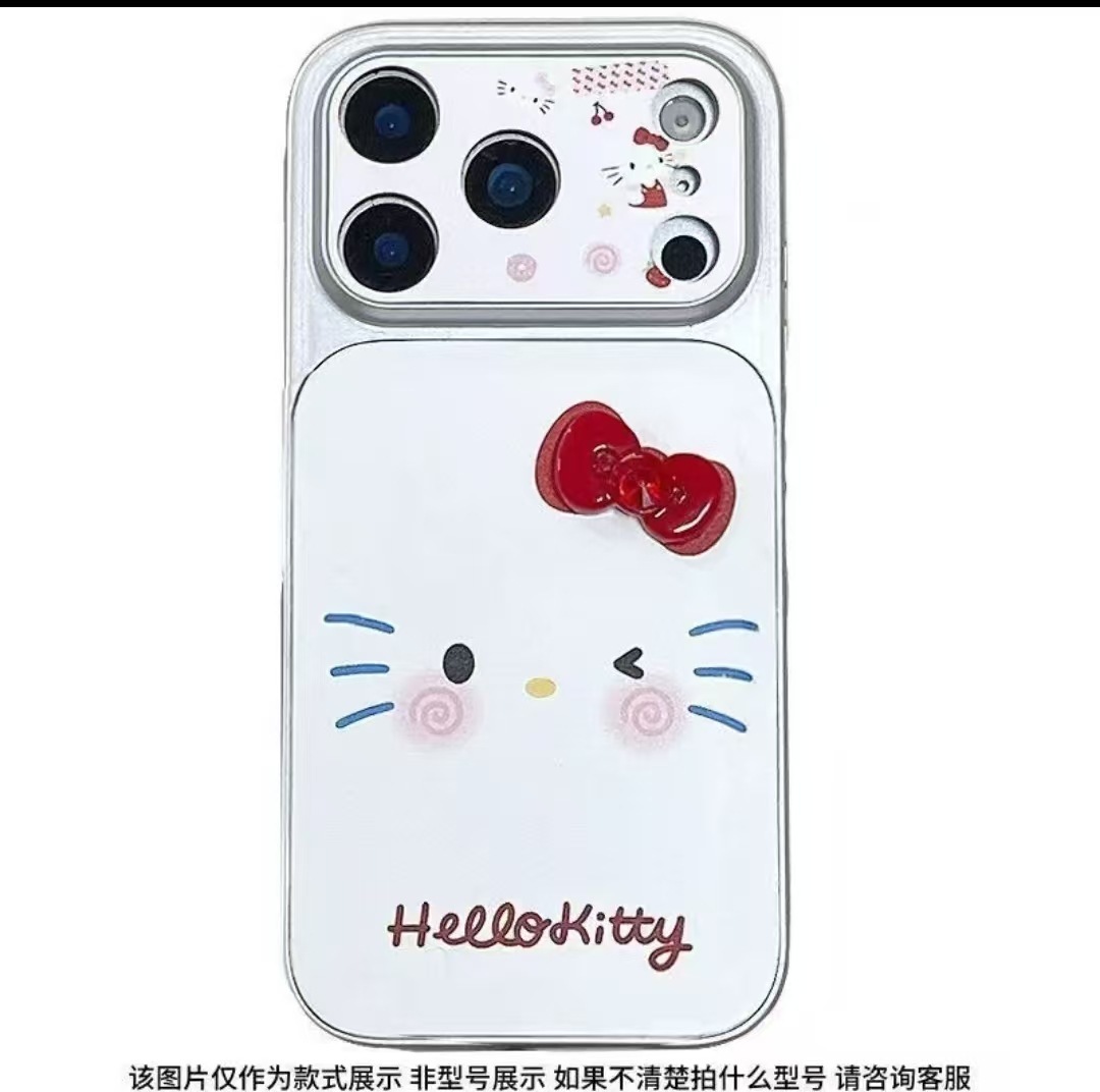 立体リボンとウインクKT猫 iPhone 17 Pro Max/16 Pro/15/14/13/12対応