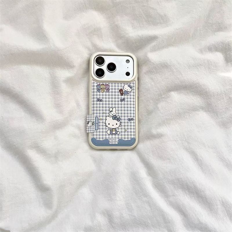 青チェックキティ猫 ラベル付き OPPO RENO14 PRO/Reno 13/FIND X9/A97対応