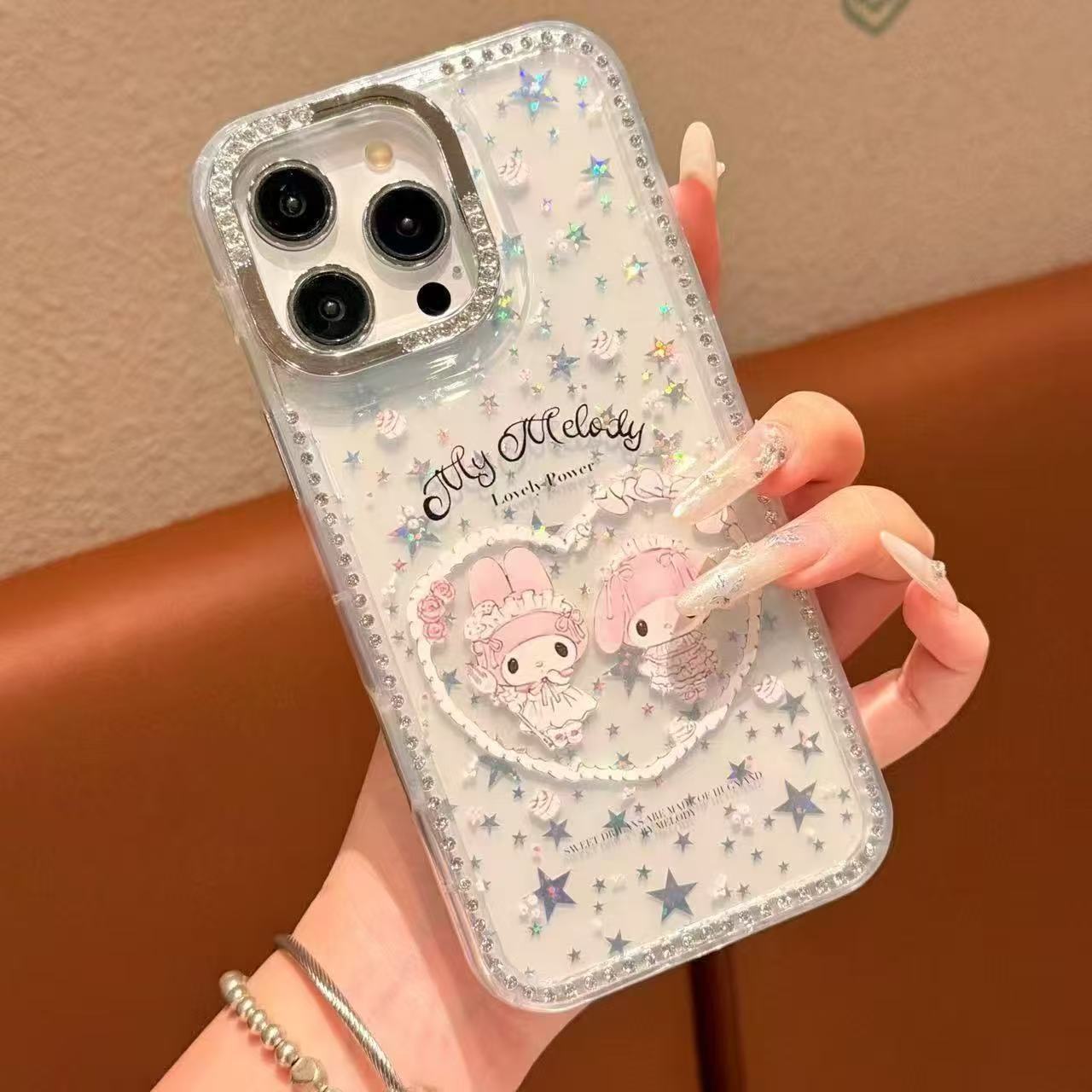 ハートのマイメロディチャーム iPhone 17 Pro Maxラメケース 16 Pro/15/14/13対応