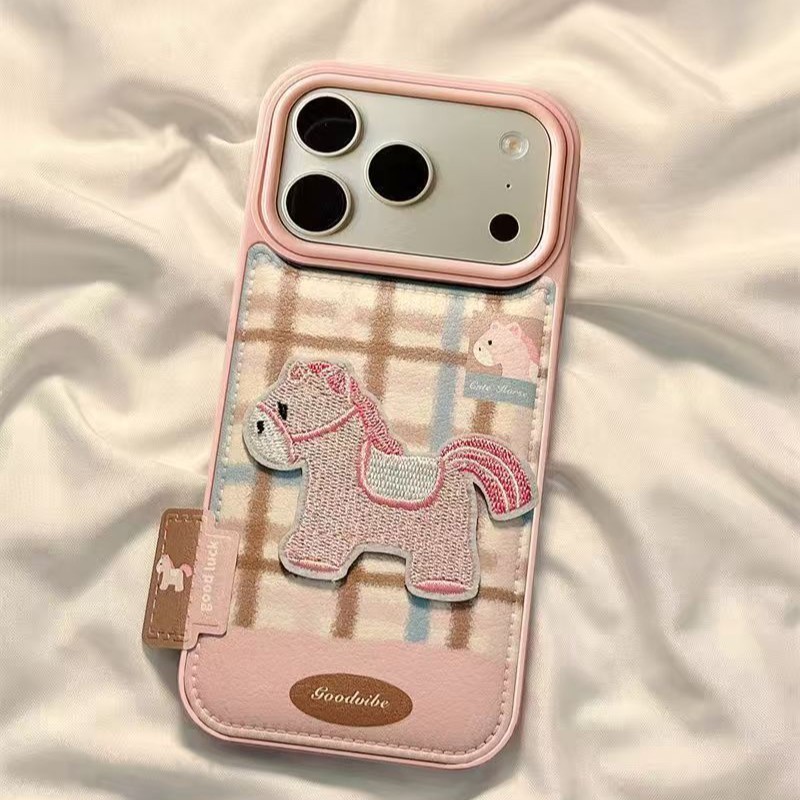 小さなラベル付き刺繍ピンク馬 OPPO RENO14 PRO/Reno 13/FIND X9/A97対応