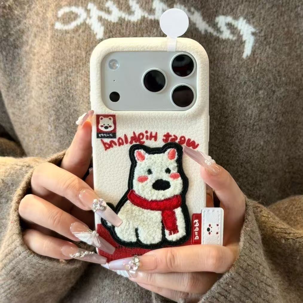刺繍ウエストハイランドとペンギン ラベル付き 小米17 Pro Max/15 Pro/14/Redmi Note対応