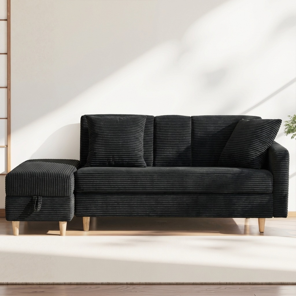 【国内発送】1801ソファ ソファーベッド カウチソファ 3人掛け オットマン付き 多機能ソファ 左右側とも取り付けるアームレスト たくさん収納 レイアウト自由 クッション2個