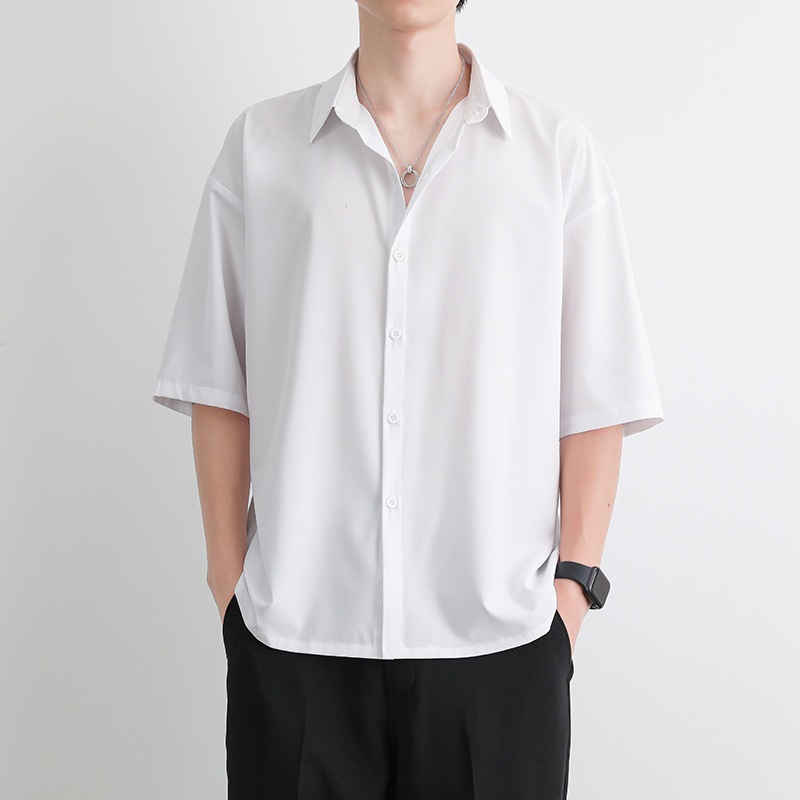 [3日で出荷] シャツシャツの男性のの緩い薄いセクション半袖の白い5分の袖のシャツカーディガン半袖ブラウス