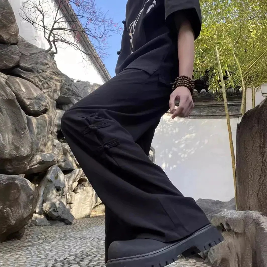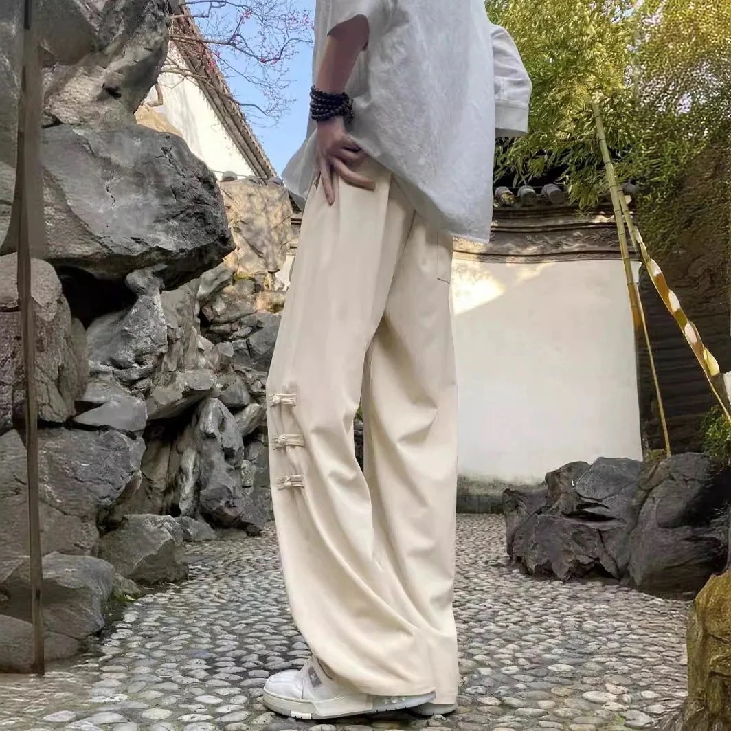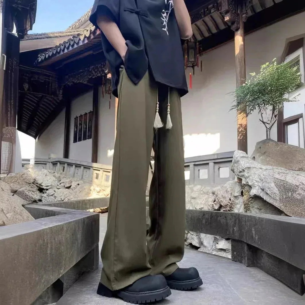 新風アイスシルクパンツ 男性ののシニア感覚のドレープ緩いストレートワイドレッグカジュアルパンツ