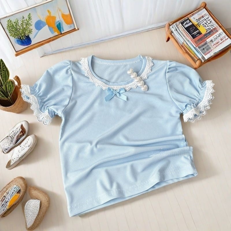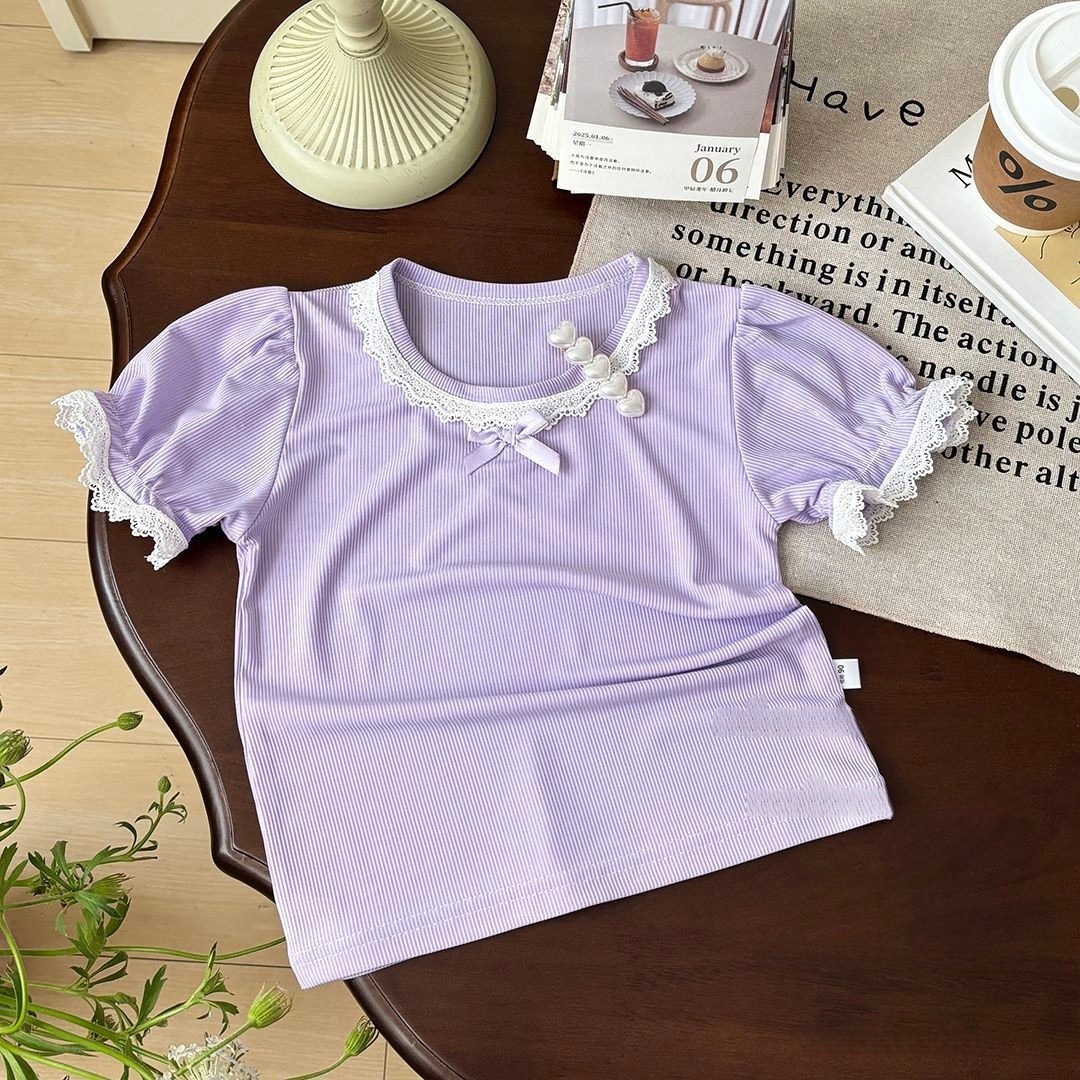 結婚式 卒園式 フォーマル ピアノ発表会 発表会 入学式 通学 子供服 夏 半袖 卒業式 七五三 パーティー 子供服 リゾート ビーチ 女の子向け新作ファッショナブルなベビーサマーカットソーレースト