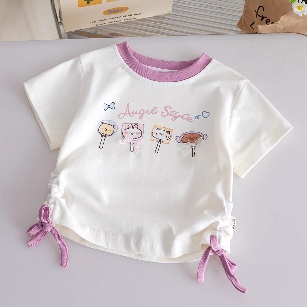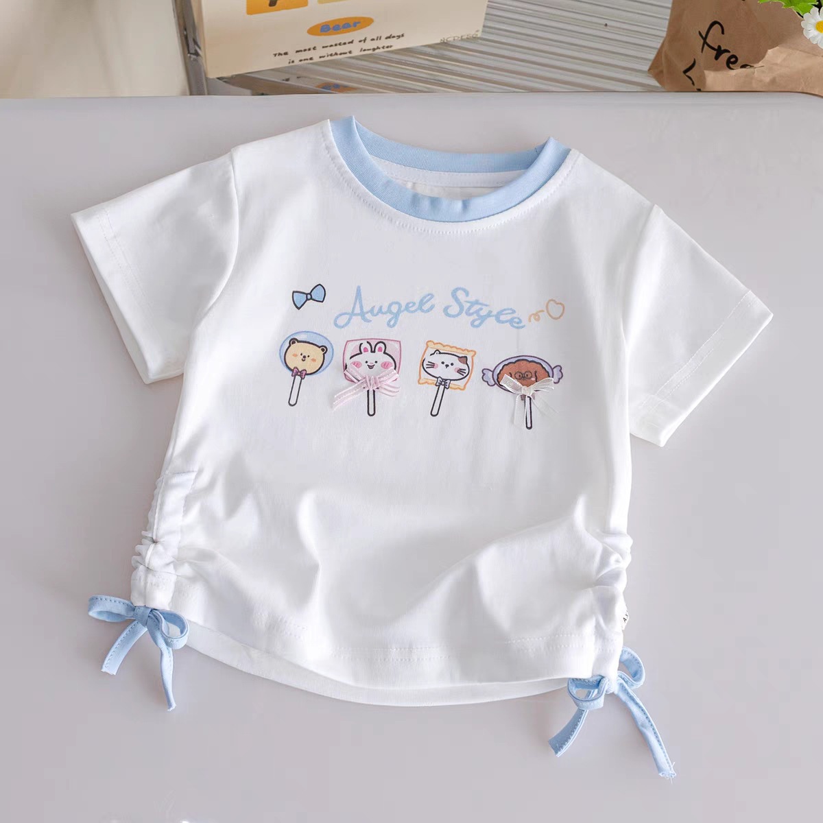 七五三 通学 フォーマル 入学式 卒園式 ピアノ発表会 結婚式 子供服 夏 半袖 卒業式 発表会 パーティー 子供服 リゾート ビーチ 女の子用カートゥーン柄半袖夏の新作可愛いドローストリング付きおし