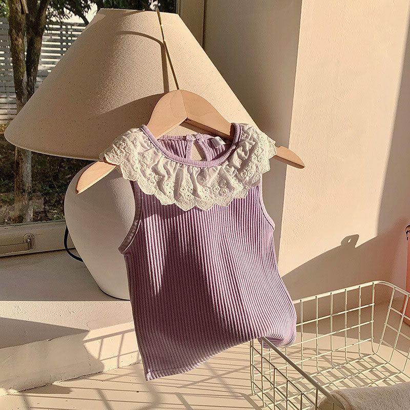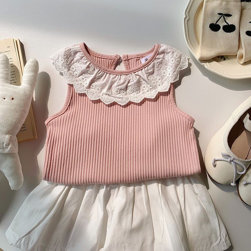 入学式 通学 ピアノ発表会 フォーマル 卒業式 子供服 夏 半袖 パーティー 結婚式 発表会 卒園式 七五三 子供服 リゾート ビーチ 女の子用夏服レースタンクトップベビーフリル付きスイート薄手レー
