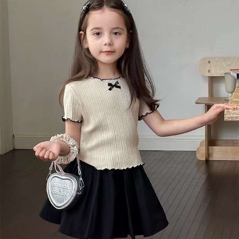 結婚式 フォーマル 入学式 ピアノ発表会 卒園式 七五三 パーティー 卒業式 子供服 夏 半袖 通学 発表会 子供服 リゾート ビーチ 夏用リボン付き半袖シャツ女性用ラウンドネック子供用カジュアル