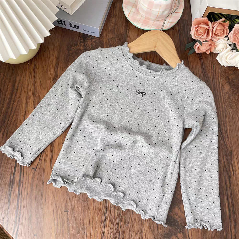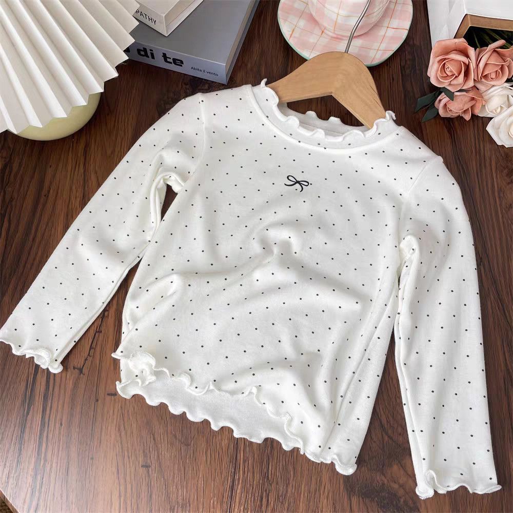子供服 夏 半袖 結婚式 卒園式 ピアノ発表会 通学 入学式 フォーマル 七五三 パーティー 発表会 卒業式 子供服 リゾート ビーチ 女の子用ドット柄長袖Tシャツおしゃれなプリンセス風プルオーバー