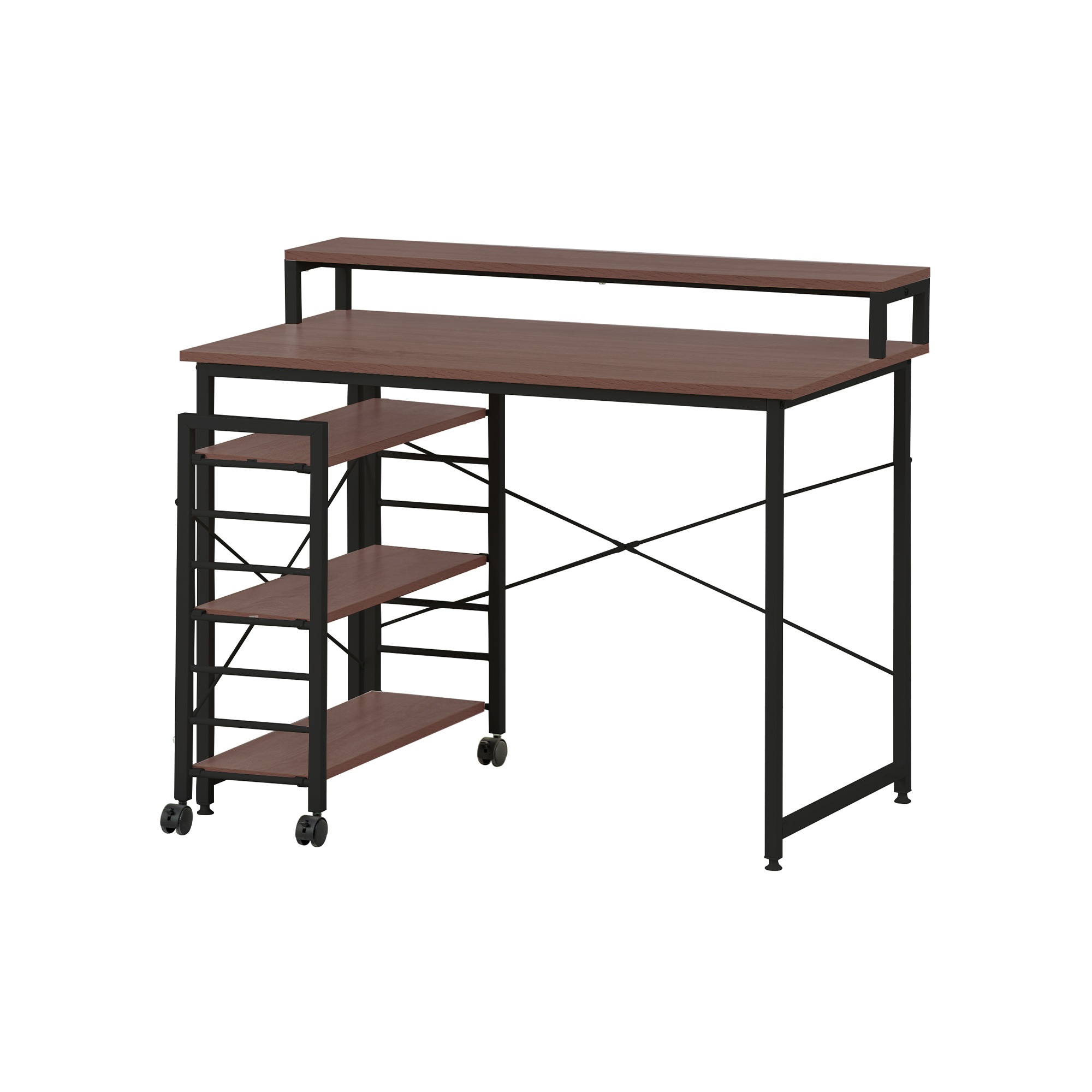 【国内発送】2352【新品登場】【ブラウン】パソコンデスク キャスター付きで移動可能ラック付き デスク ワークデスク オフィスデスク 学習デスク