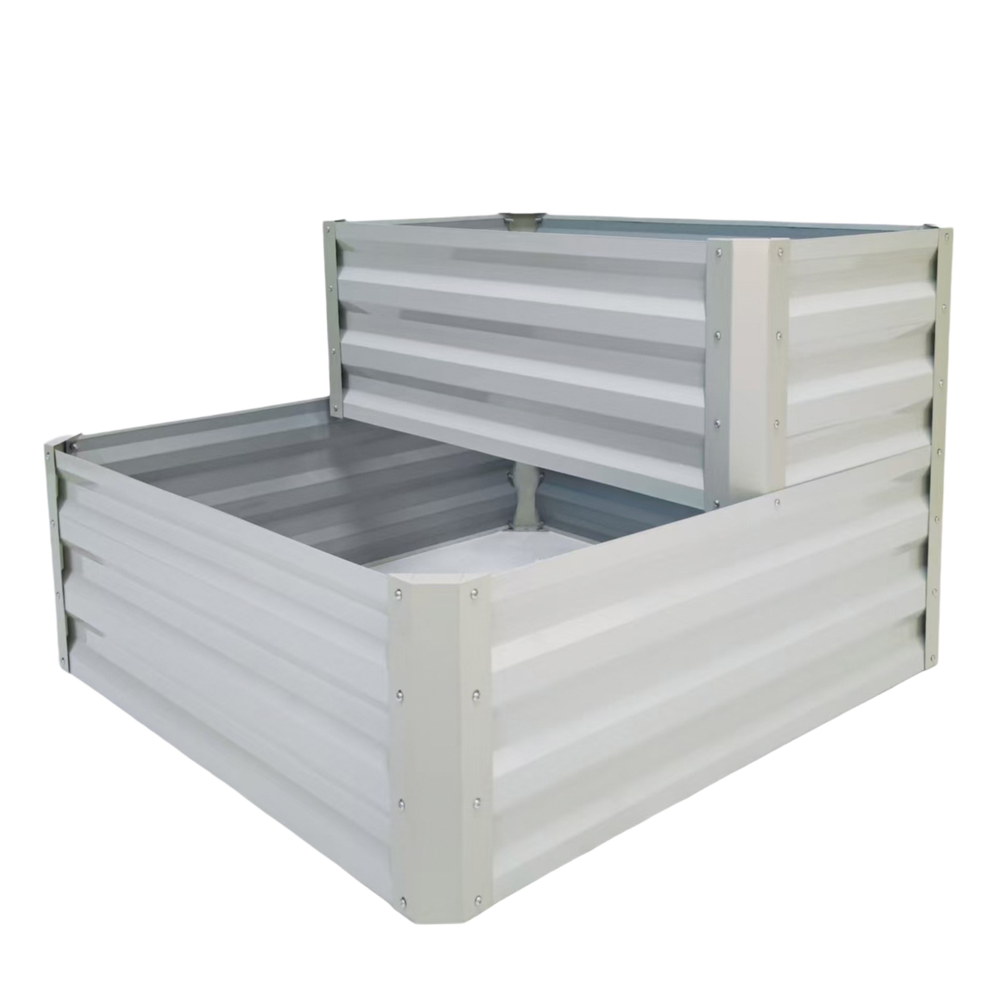 1695【ベージュ】ガーデンベッド 2色 二段式 レイズドガーデンベッド 屋外 ガーデンプランター ガーデニング用 アウトドア用 金属製 野菜用ガーデンベッド ブラック ベージュ 家庭用 頑丈設計 組