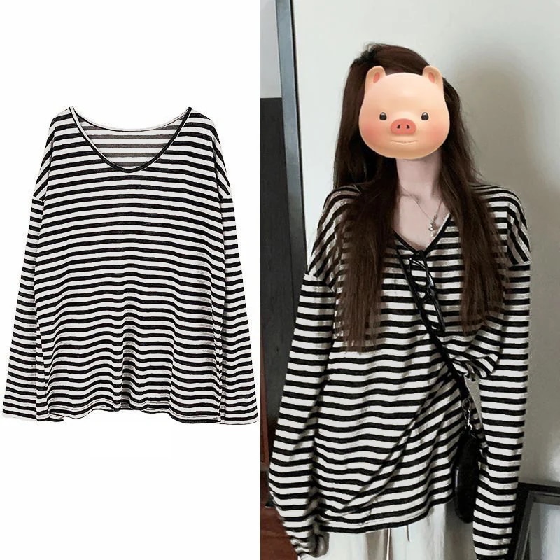 長袖tシャツ 韓国ファッション ラフなスタイル レトロ コントラストカラー ストライプ 長袖 Tシャツ レディース 2026 新作 柔らかな肌触り ゆったり スリム効果 ミディ丈 トップス