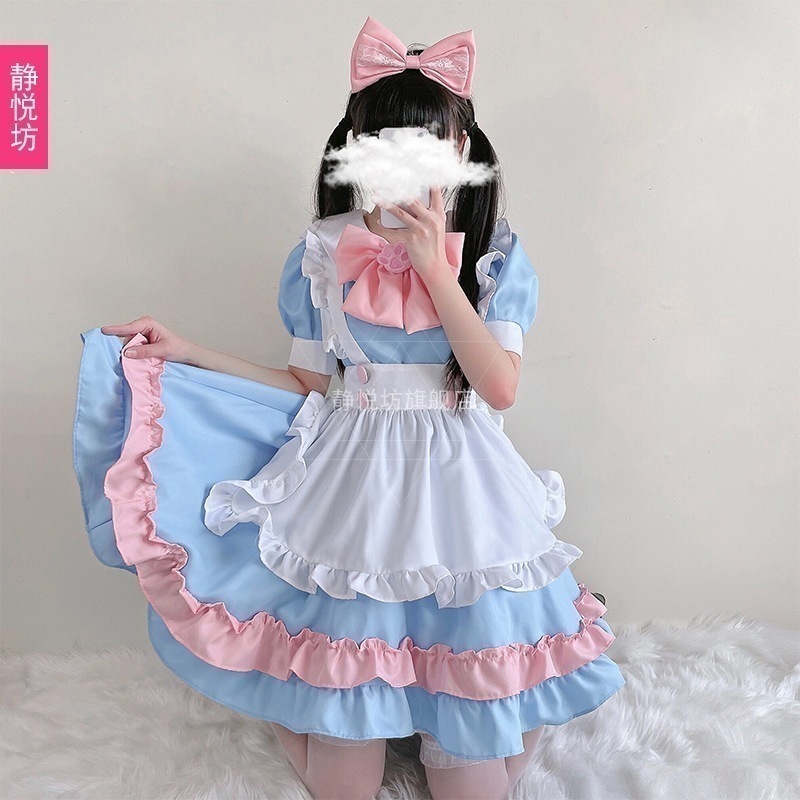 ピンクメイド服蝶結びメイド服ロリータワンピースソフト妹コスプレ衣装アリスcos服