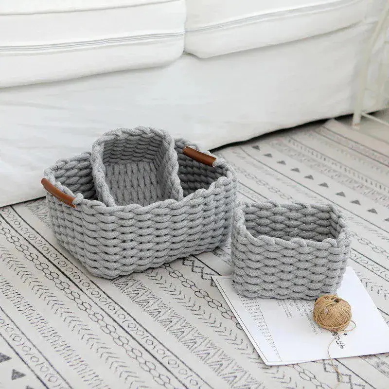 ロープ編みバスケット 収納ボックス 大容量 韓国インテリア 韓国風空間作り