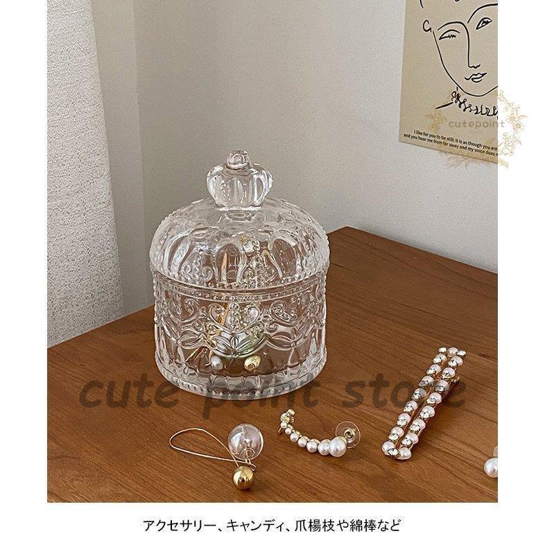 大人の魅力 透明 小物入れ フタ付き ガラス キャンディ箱 綿棒入れ 爪楊枝入れ クリア 収納ケース 筒型 透明ケース ガラスケース レトロ 蝶々 ティアラ2428
