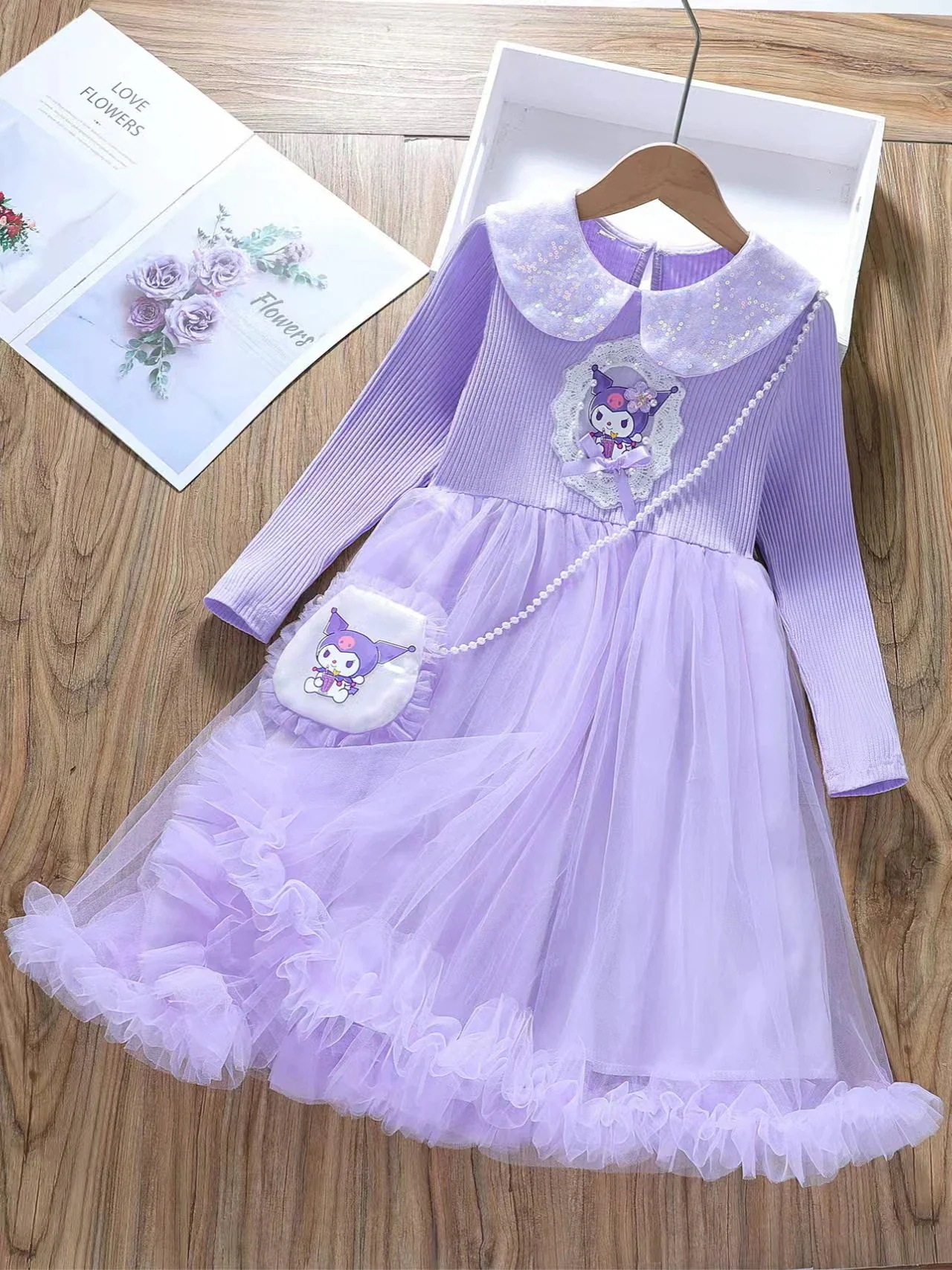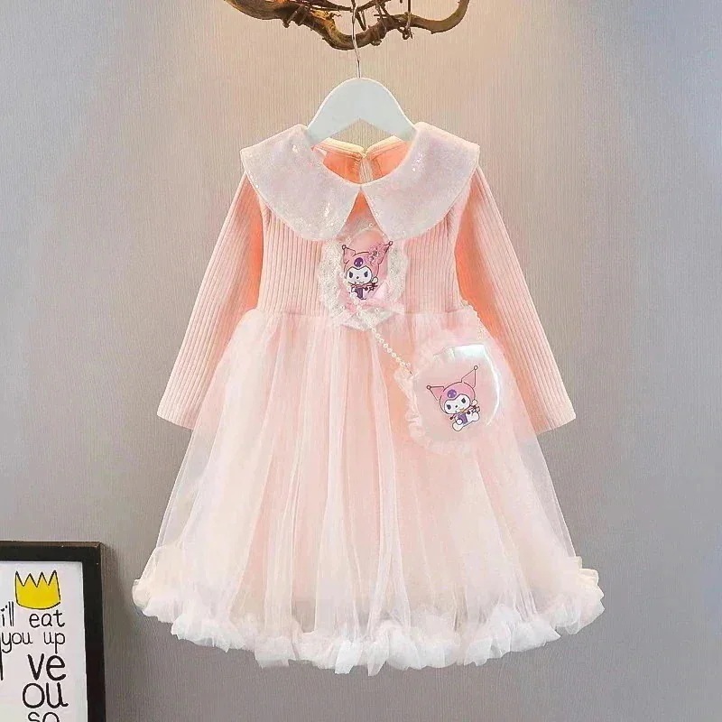 新作 サンリオ クロミ キッズ ワンピース バック付き 長袖 綿 春 秋 韓国子供服 ドレス バッグ付き チュール ガールズ 女の子 プリンセス風 通学着通園着