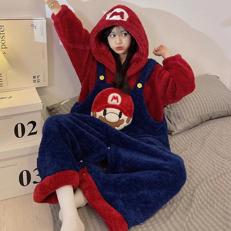 スーパーマリオ服装ワンピースパジャマ 冬かわいい 文化祭 冬 厚 着ぐるみパジャマ ルームウェア修学旅行 学園グループ服