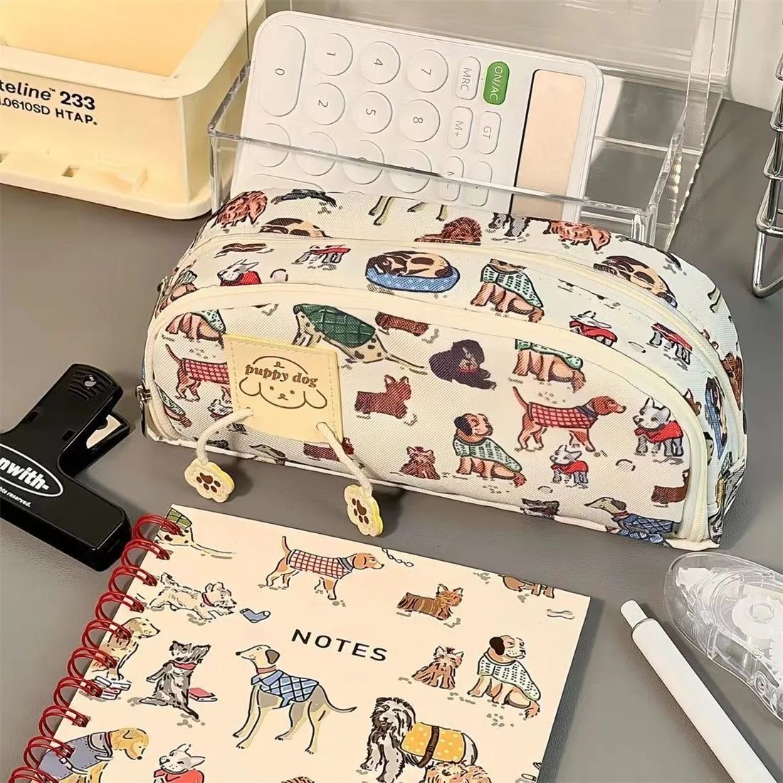 筆箱/ペンケース レトロな子犬のペンバッグ大容量学生文房具収納バッグ