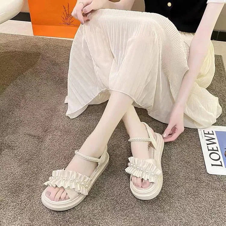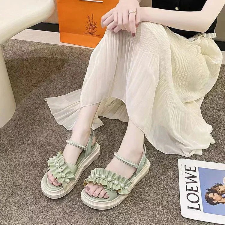 人気商品 サンダル レディース 優しい パール 厚底 フェアリー風 スカートに合わせる サンダル 2026 夏 新作 何にでも合う ローファー サンダル
