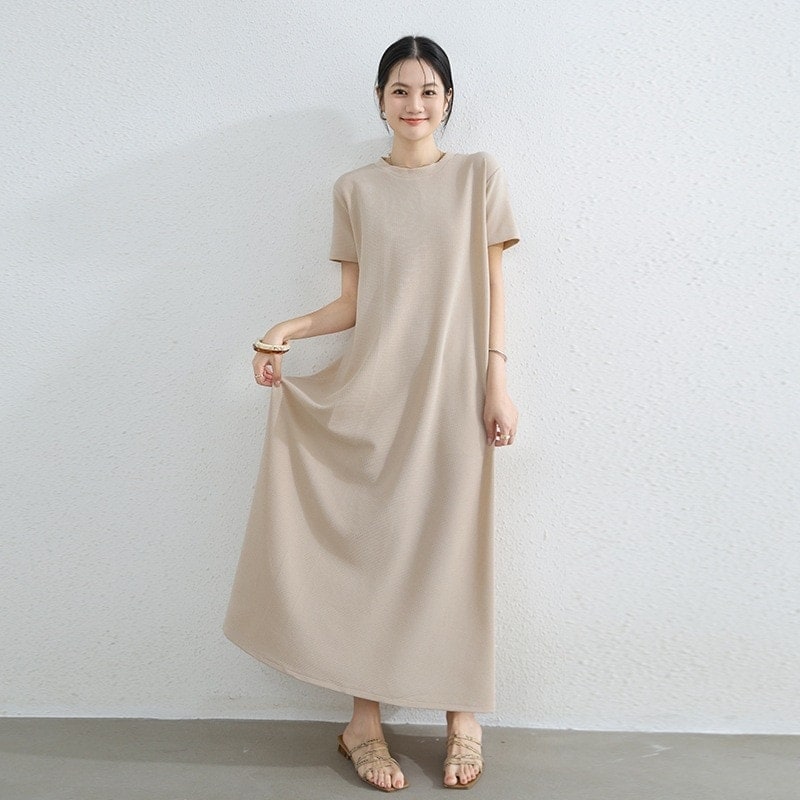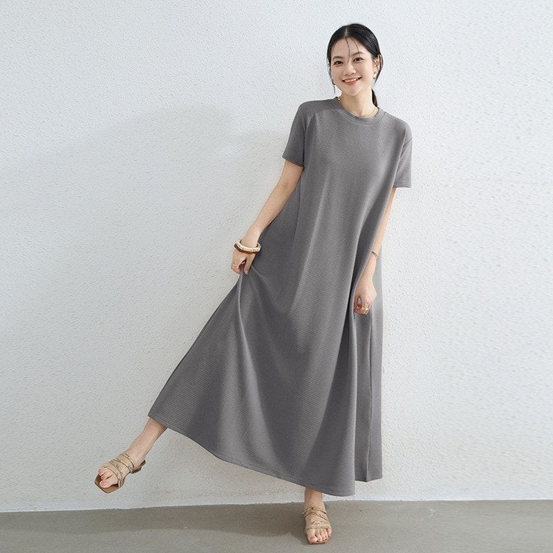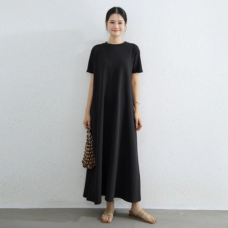 迅速出荷 2026新作 ワンピース 半袖 ロングスカート レディース ゆったり クルーネック 大 裾 広がり Aライン ワンピース 韓国ファッション
