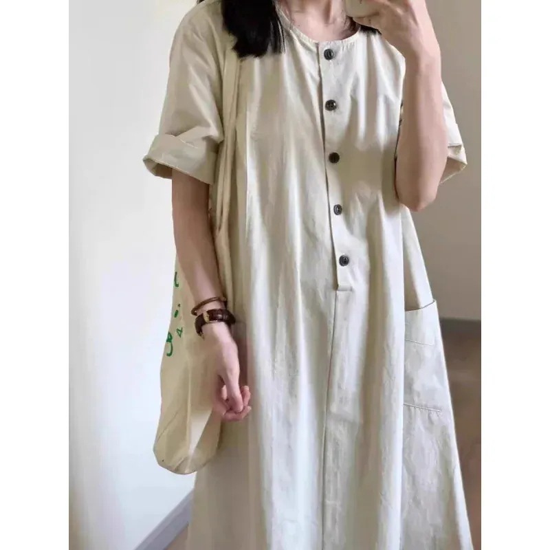 迅速出荷 2026新作 薄黄色 綿麻 シャツ ワンピース レディース 夏 日系 文芸 風 スカート 韓国ファッション