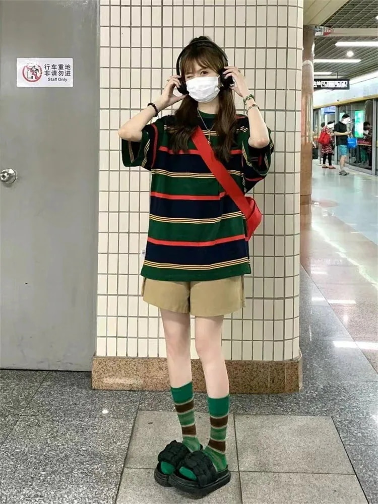 tシャツ 半袖 レディース レトロ ストライプ 半袖 Tシャツ レディース 夏 新作 カジュアル ゆったり 合わせやすい chic 半袖 トップス