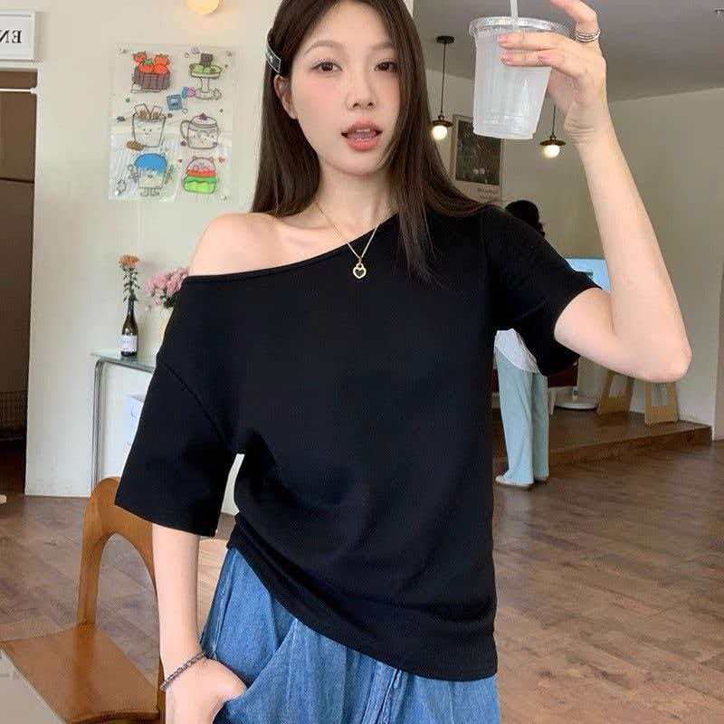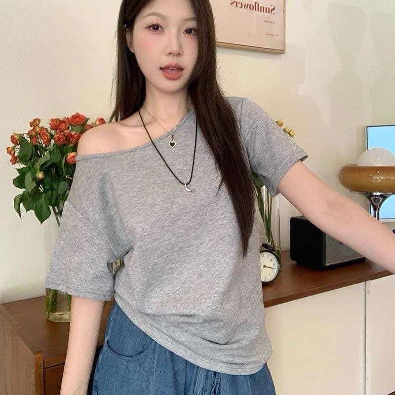 tシャツ 半袖 レディース デザイン性 半袖 Tシャツ レディース 2026 春夏 新作 オフショルダー 無地 インナー レディース トップス