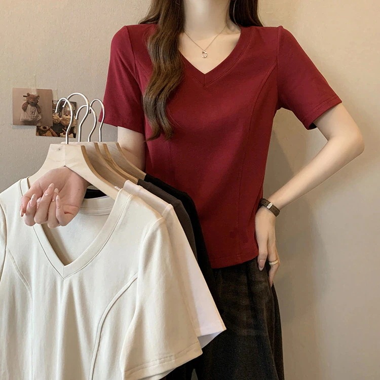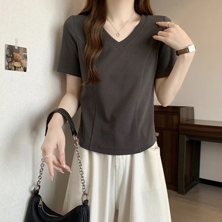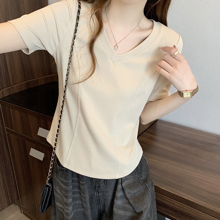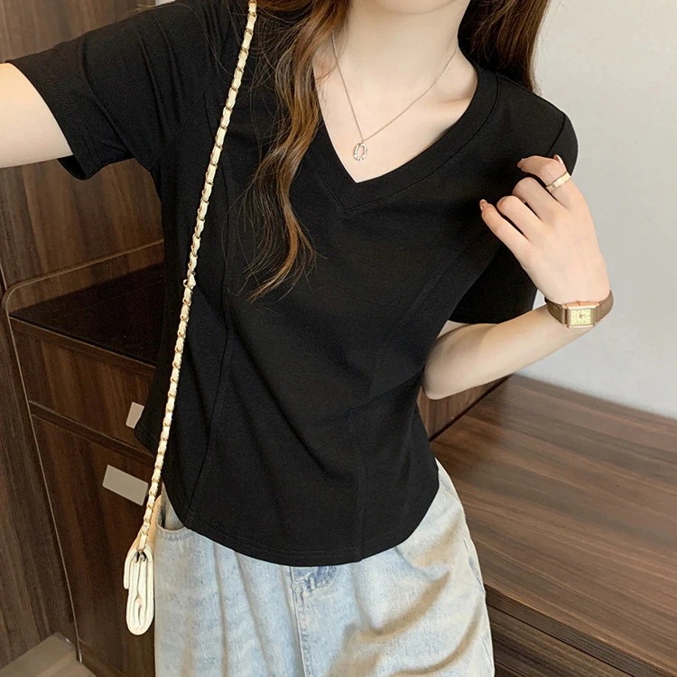 tシャツ 半袖 レディース 半袖 Tシャツ レディース 夏 アシンメトリー Vネック スリム効果 ストレートショルダー ショート丈 トップス 小柄な方 インナー おしゃれ