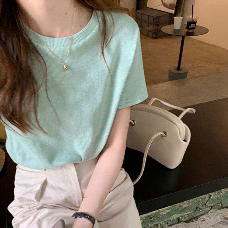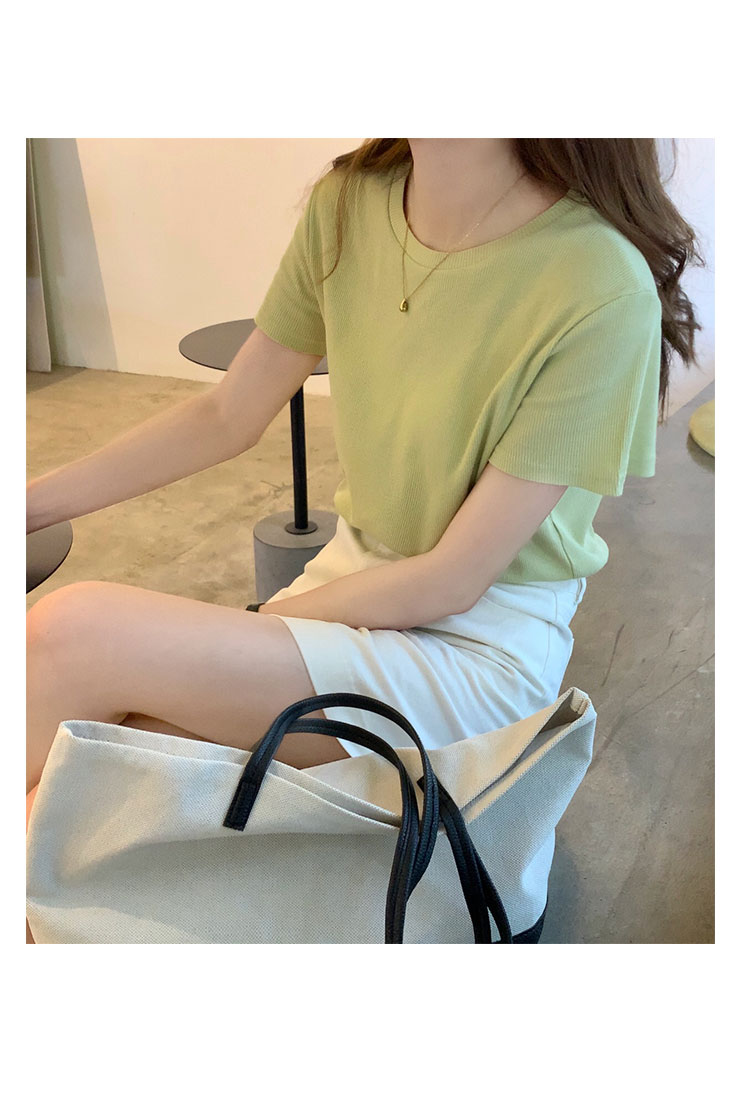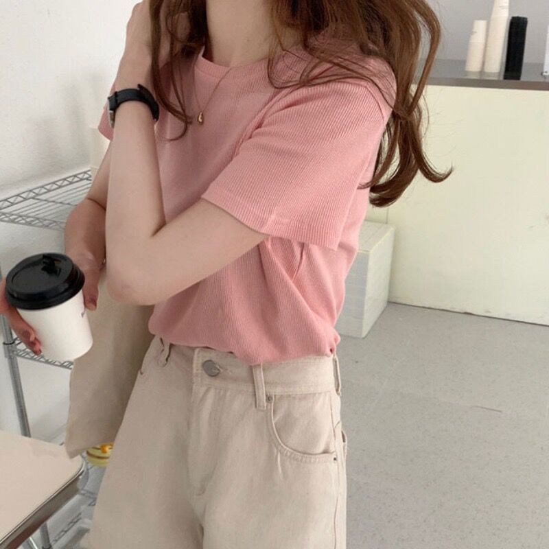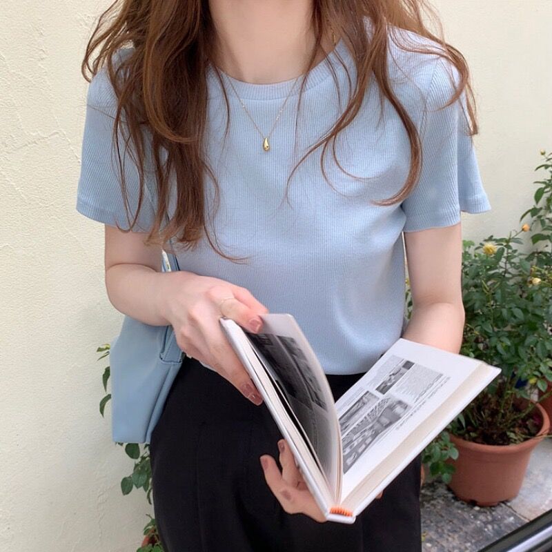 tシャツ 半袖 レディースリブ編み ニット ストレートショルダー 半袖Tシャツ レディース 夏 2026 無地 インナー おしゃれ スリム効果 トップス マルチカラー トレンド