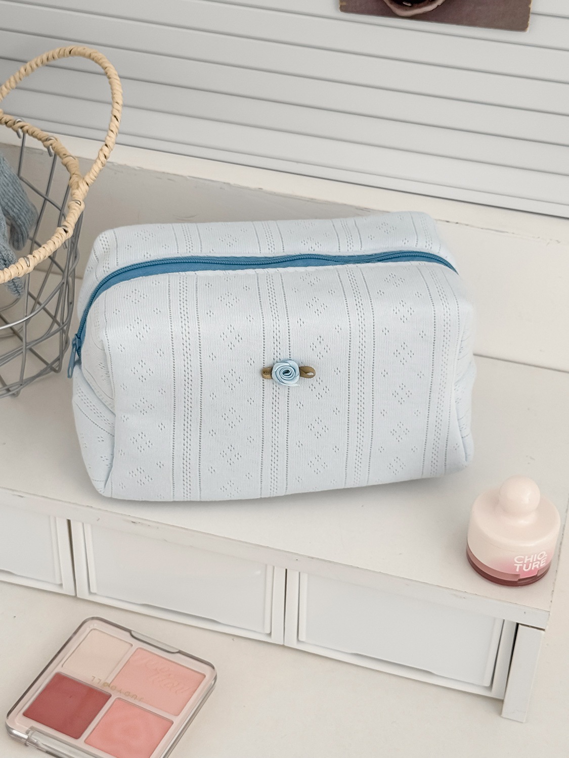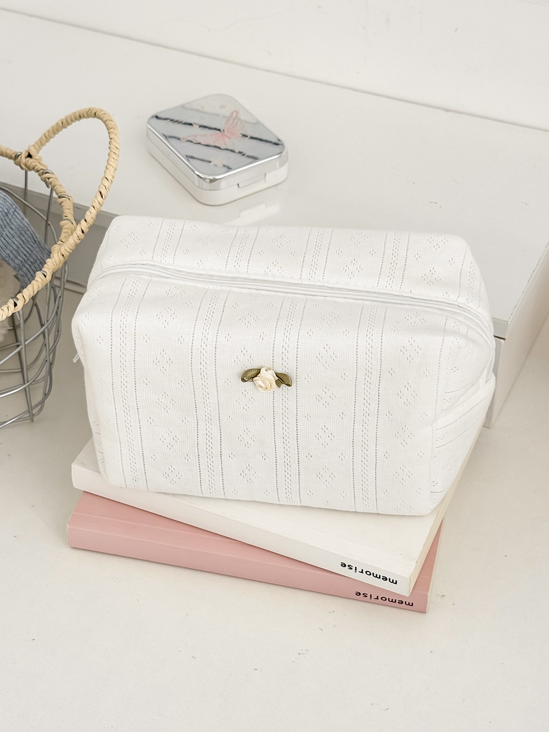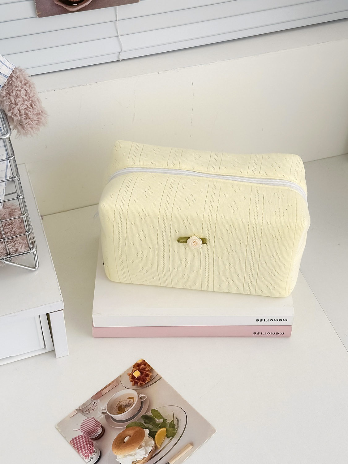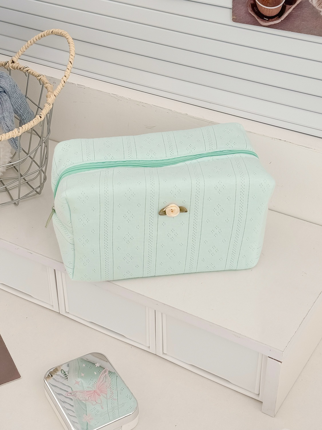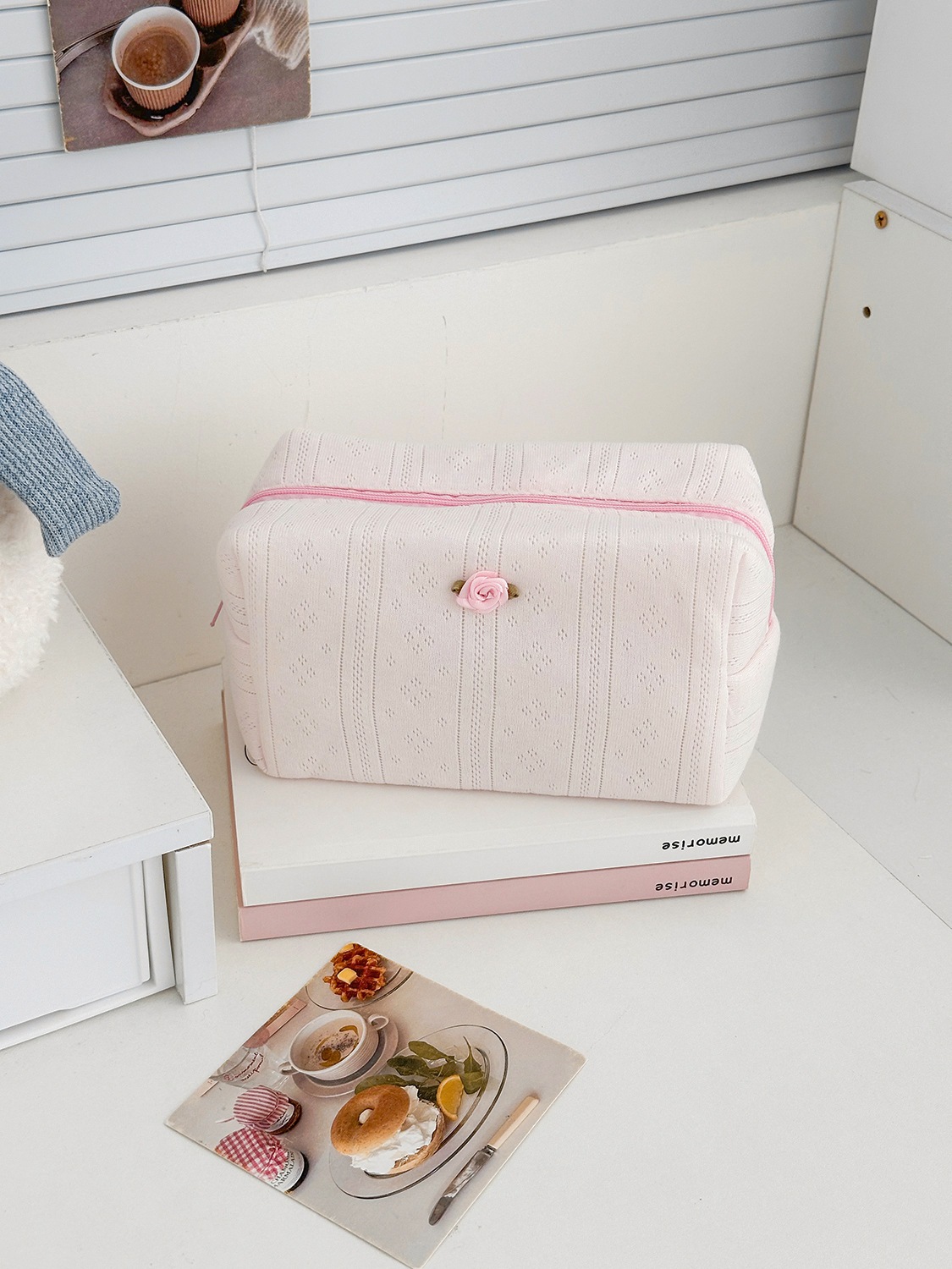 かわいい 春コスメポーチ 母の日プレゼント 小さなバラ柄のニットコットン製八角形バッグフレッシュで甘い少女風大容量で持ち運び可能な化粧品収納バッグ