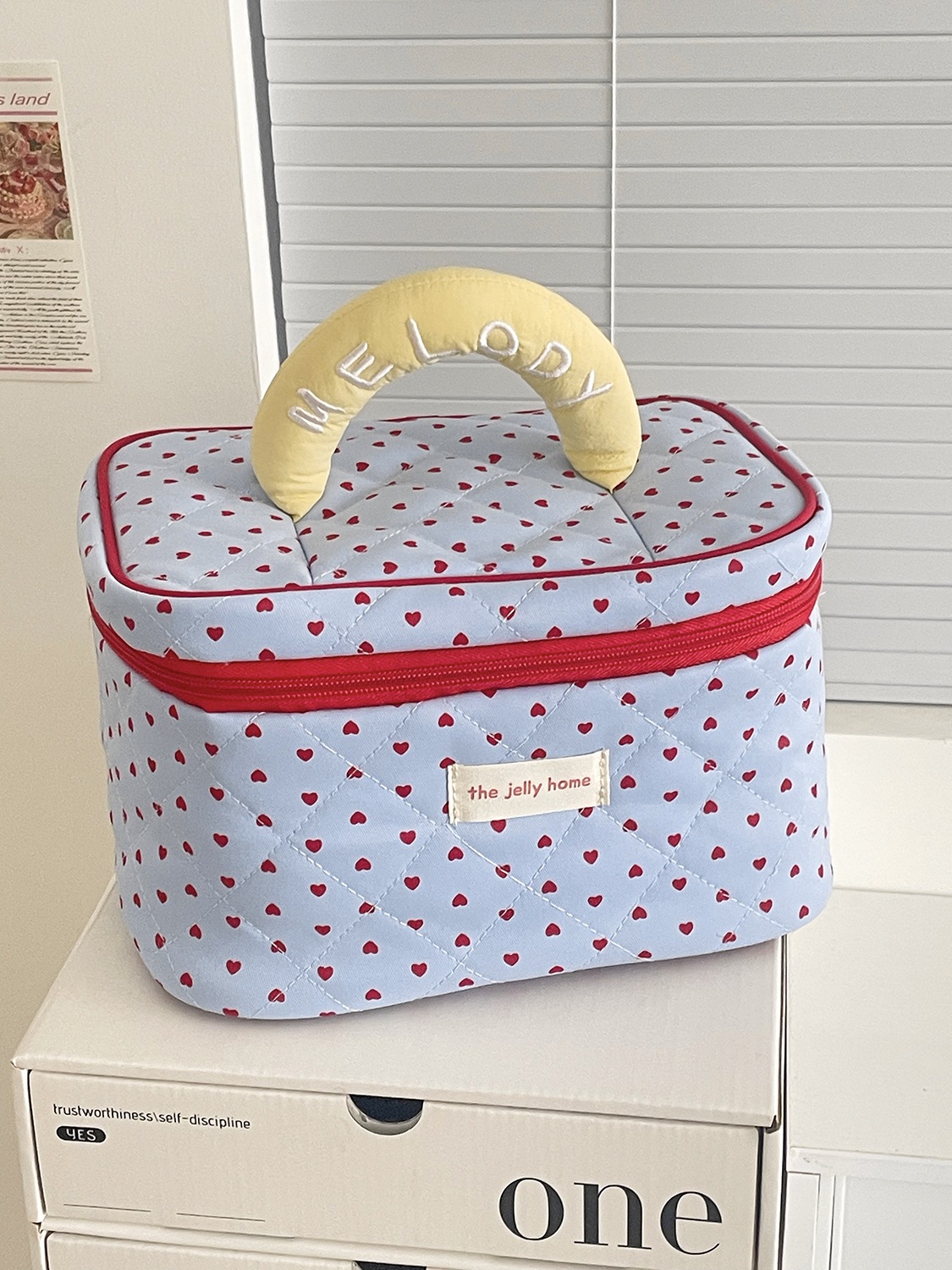 春コスメポーチ かわいい 母の日プレゼント ミルクブルーのハート型コスメポーチ新作収納バッグポータブル大容量洗面用具バッグ
