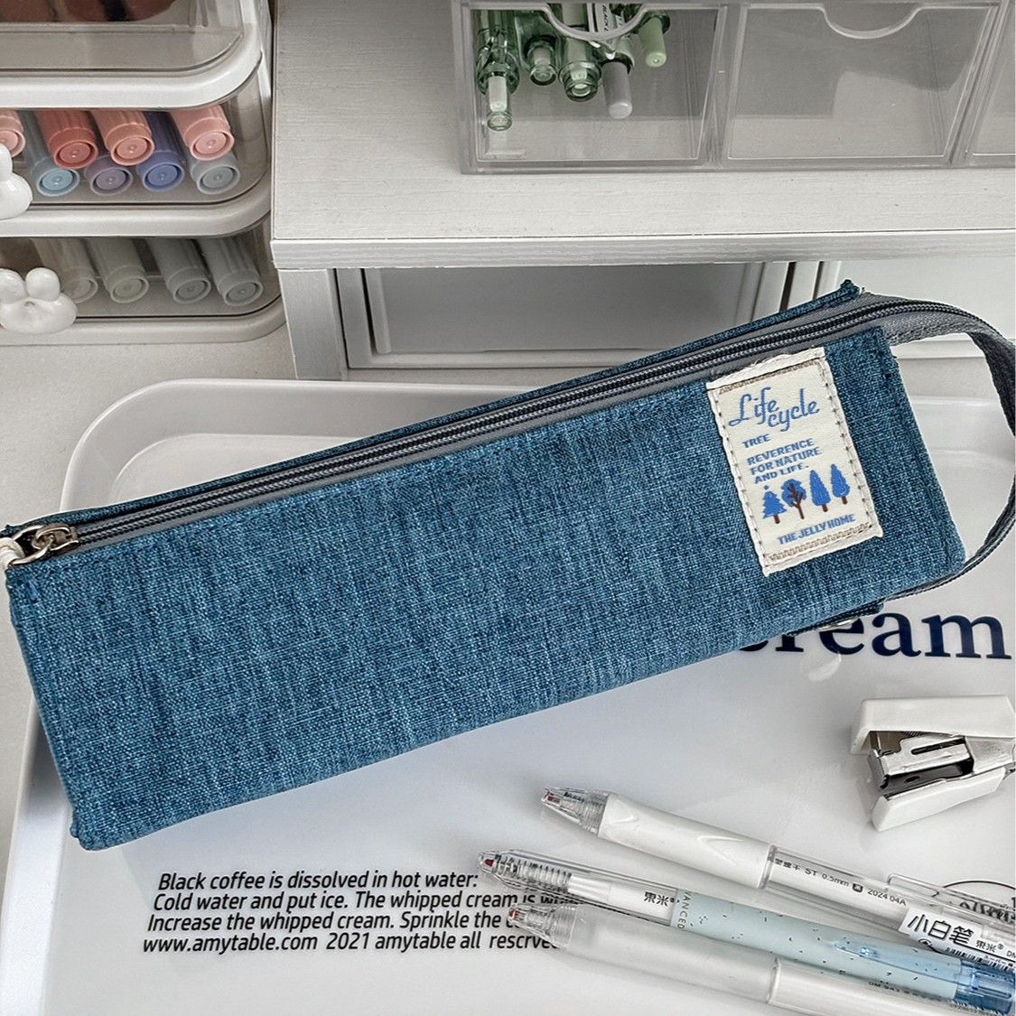 かわいい 春コスメポーチ 母の日プレゼント 小樹標立体ペンケースシンプルでスタイリッシュな正方形の大容量学生用汎用鉛筆文具収納ボックス